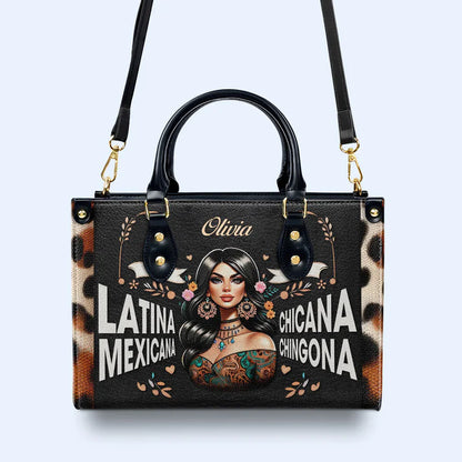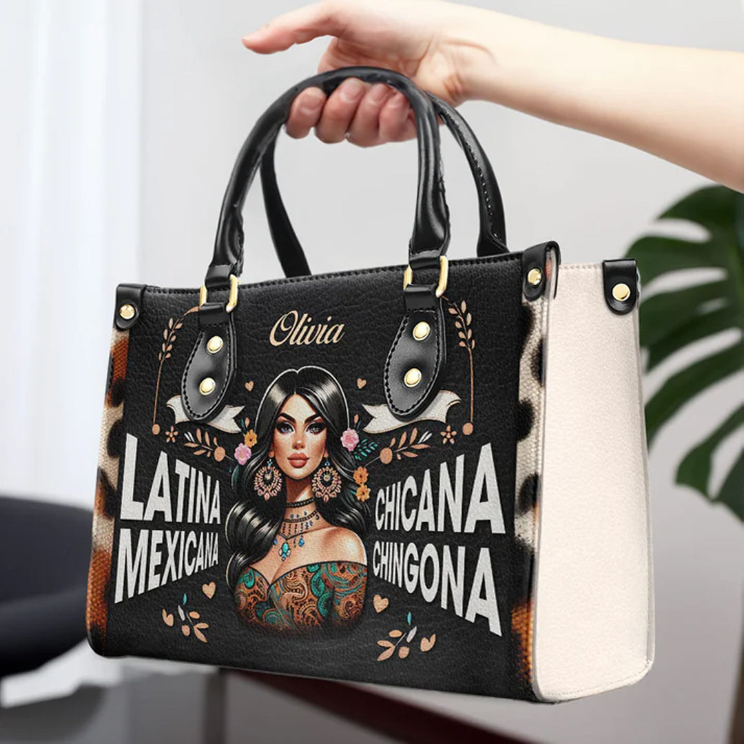 Cultural Essence Personalized Leather Tote - CHRISTIANARTBAG Chicana Pride Collection - CABLTHB09310324.