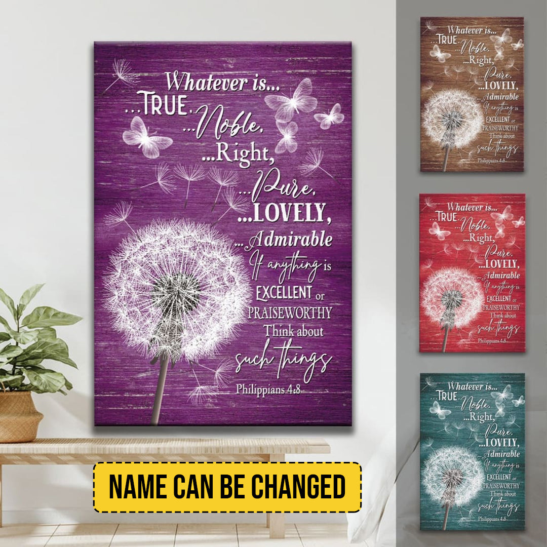 Custom Philippians 4:8 Dandelion Canvas Wall Art - Inspiring Butterfly Series Decor