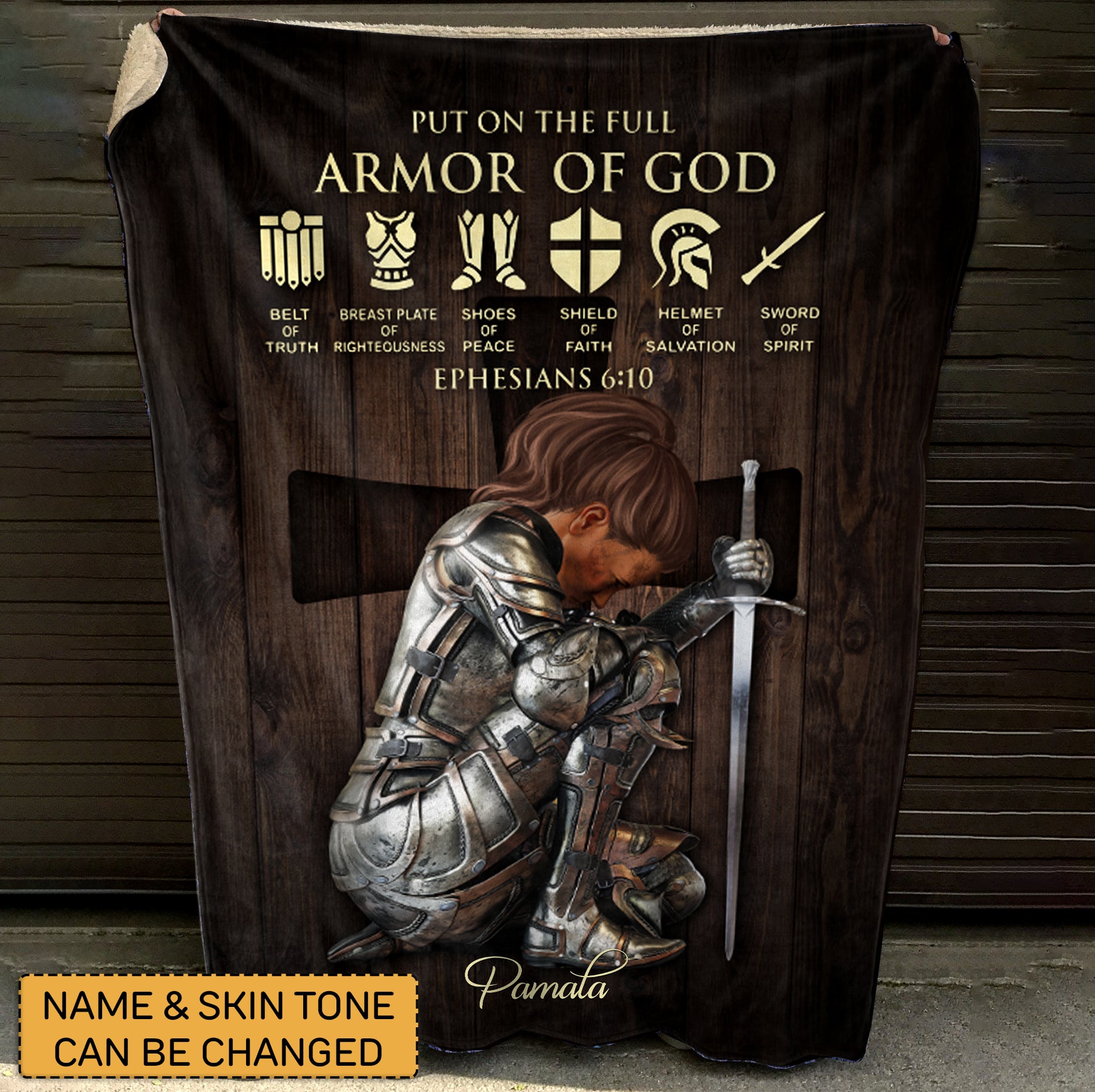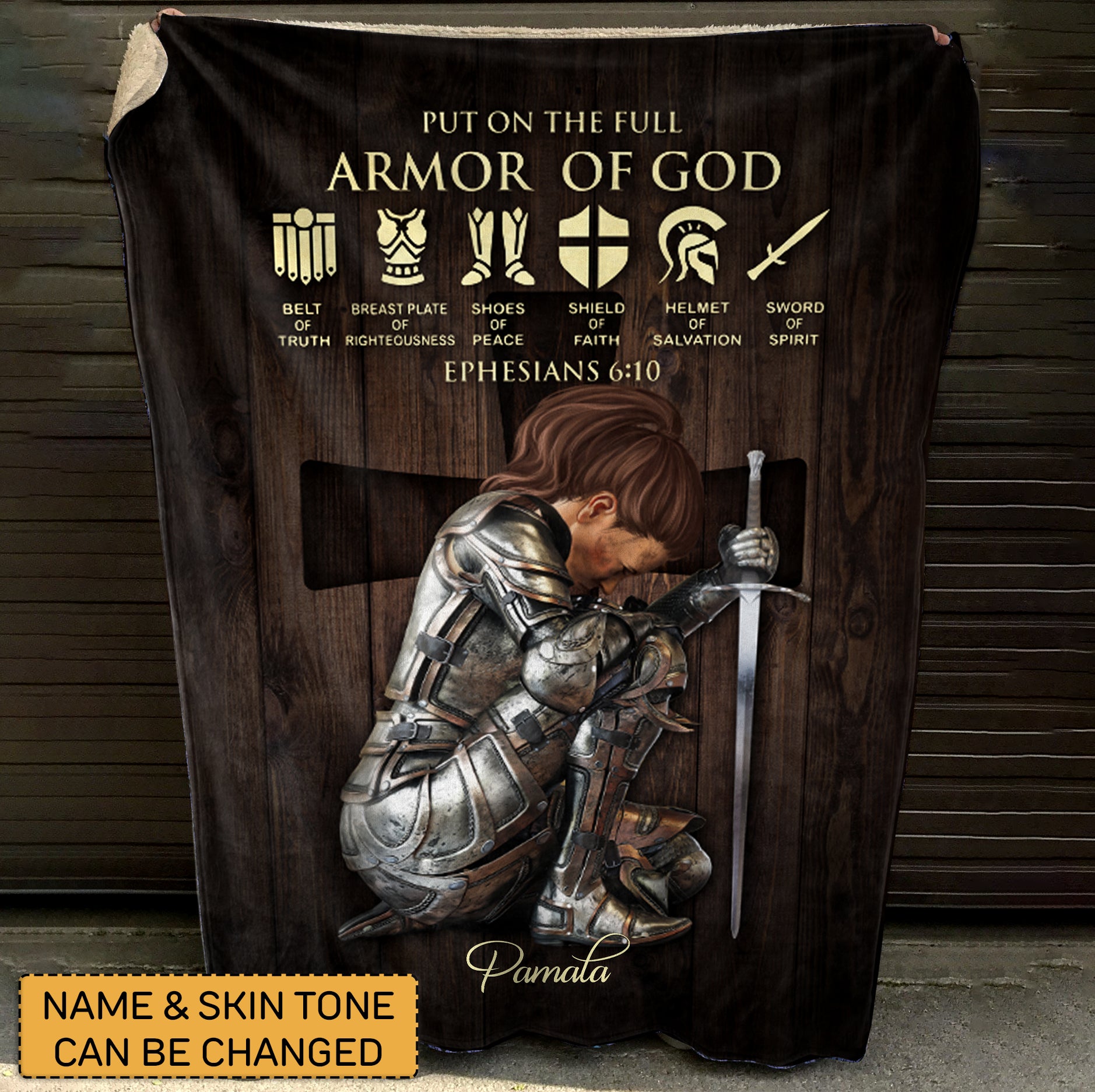 Customizable 'Armor of God' Prayer Blanket with Personalized Name - CHRISTIANARTBAG cABBL06050424.