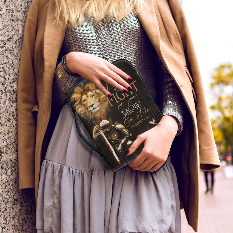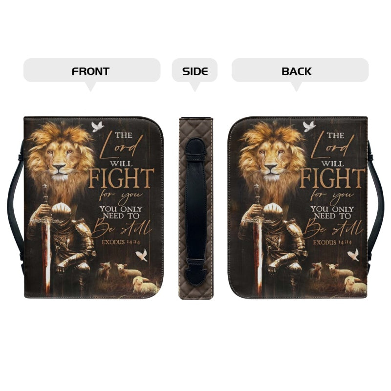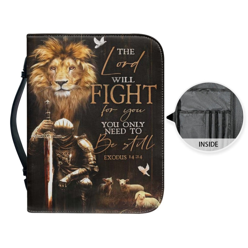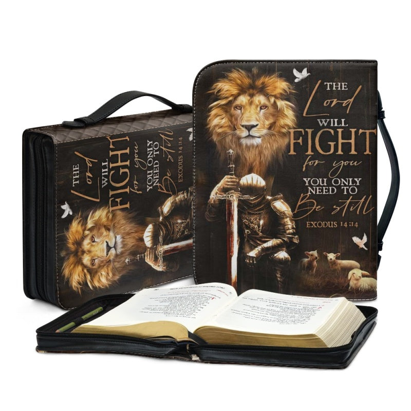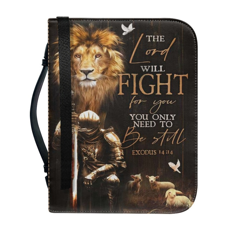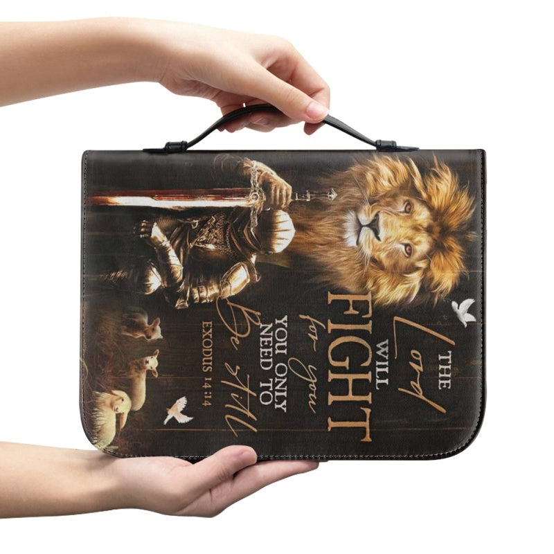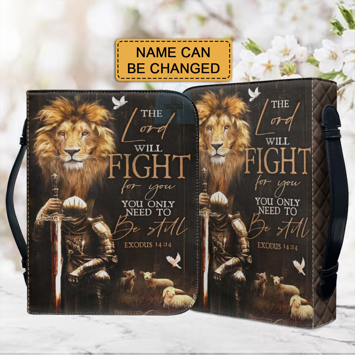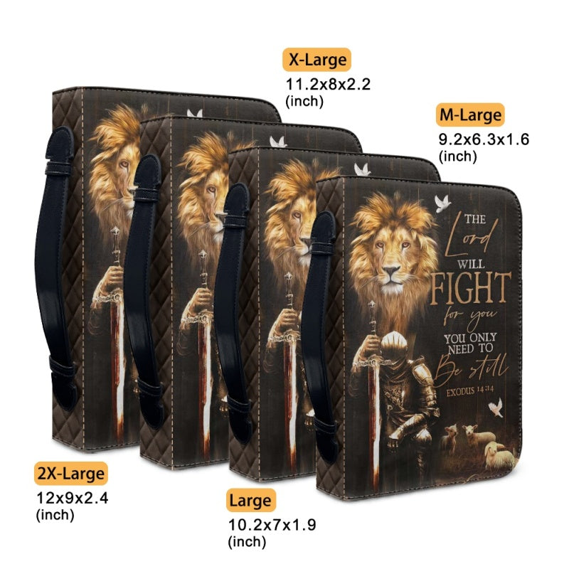 Customizable Lion & Knight Bible Cover - Inspirational Verse Design | CHRISTIANARTBAG CABBBCV01190324.
