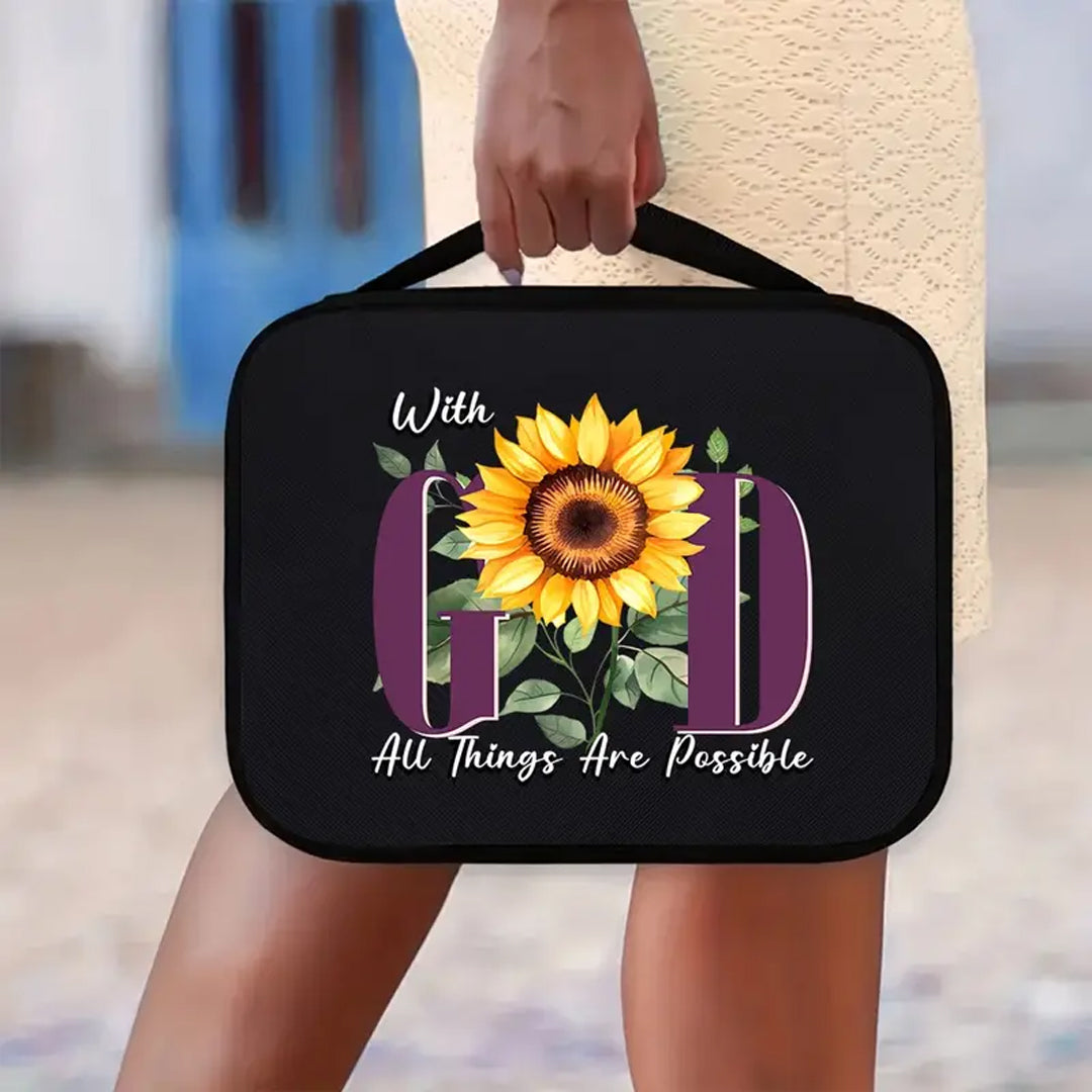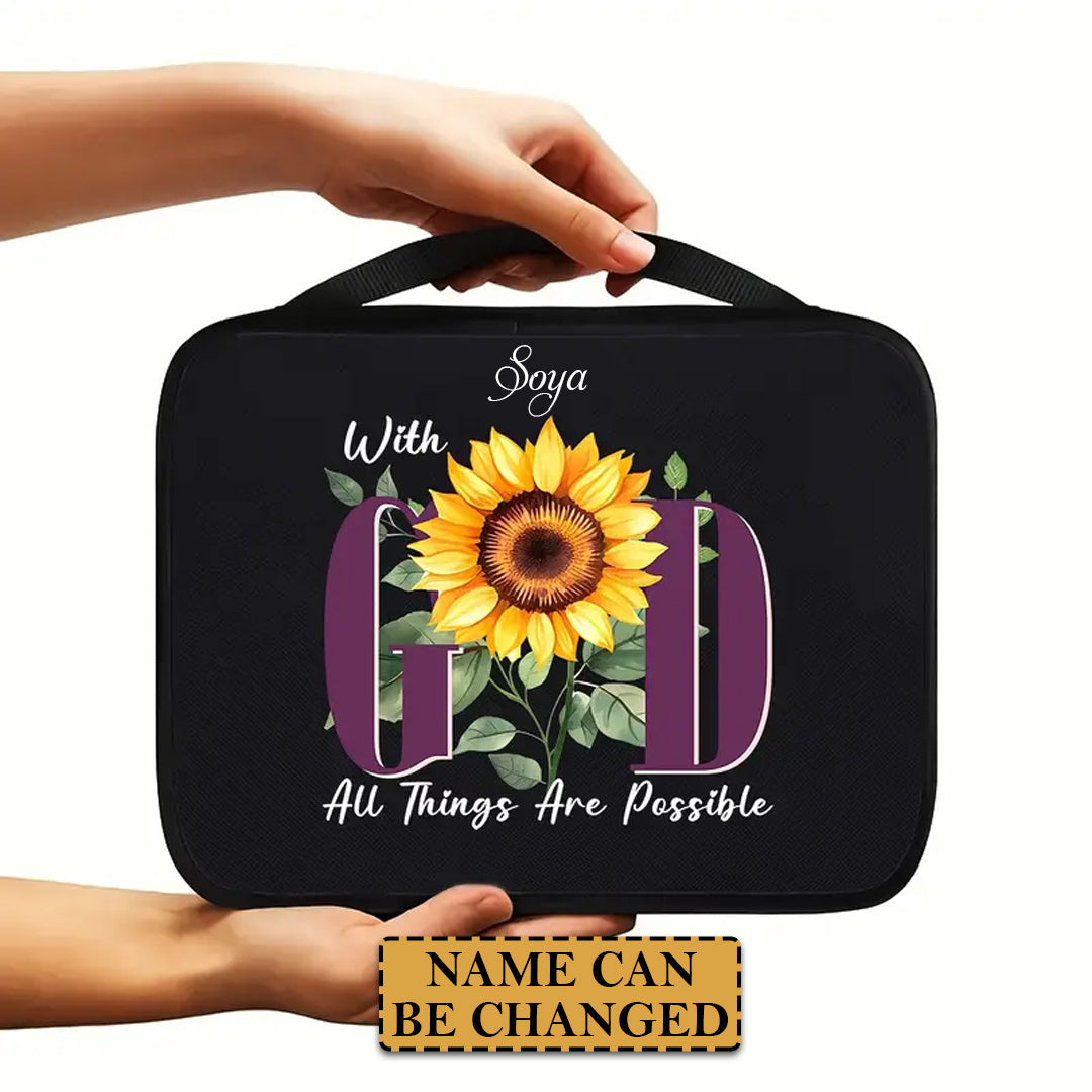 Customizable Sunflower 'With God' Canvas Bible Cover - CHRISTIANARTBAG