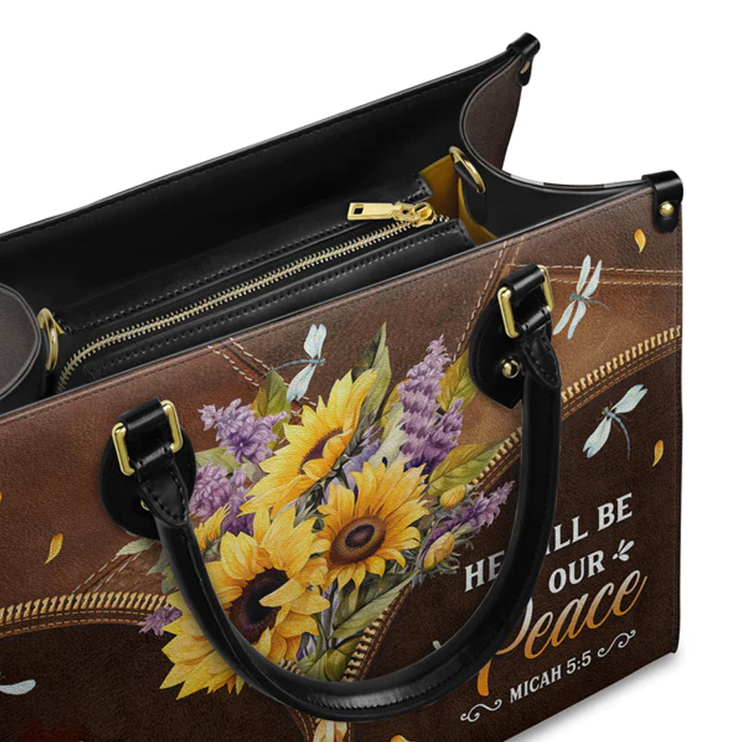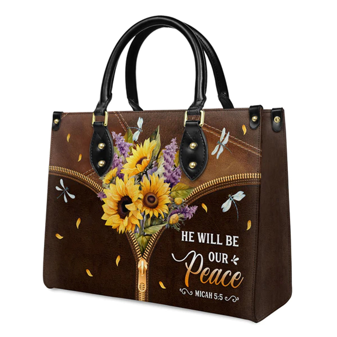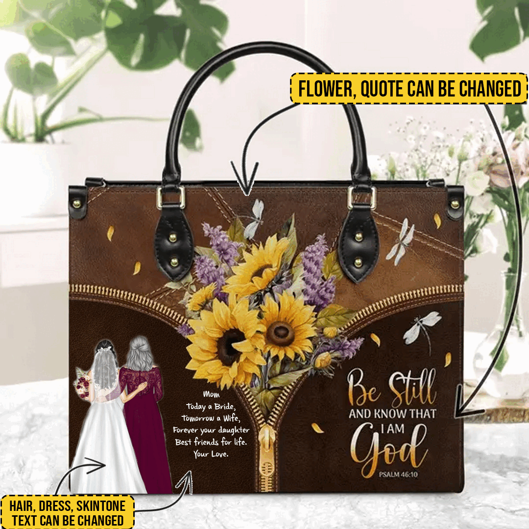Customized Christian Art Leather Handbag - Inspirational Floral Design with Psalm Quote