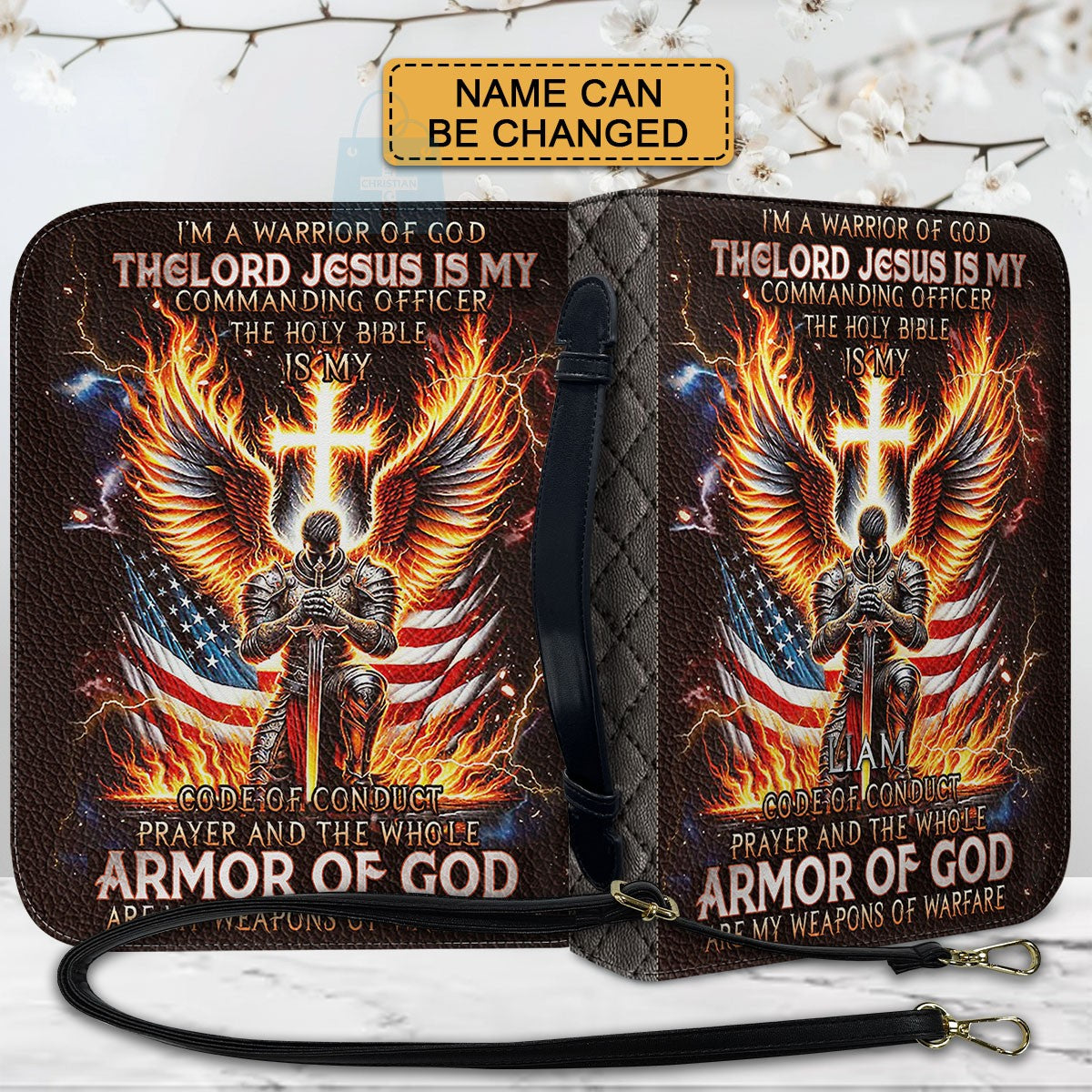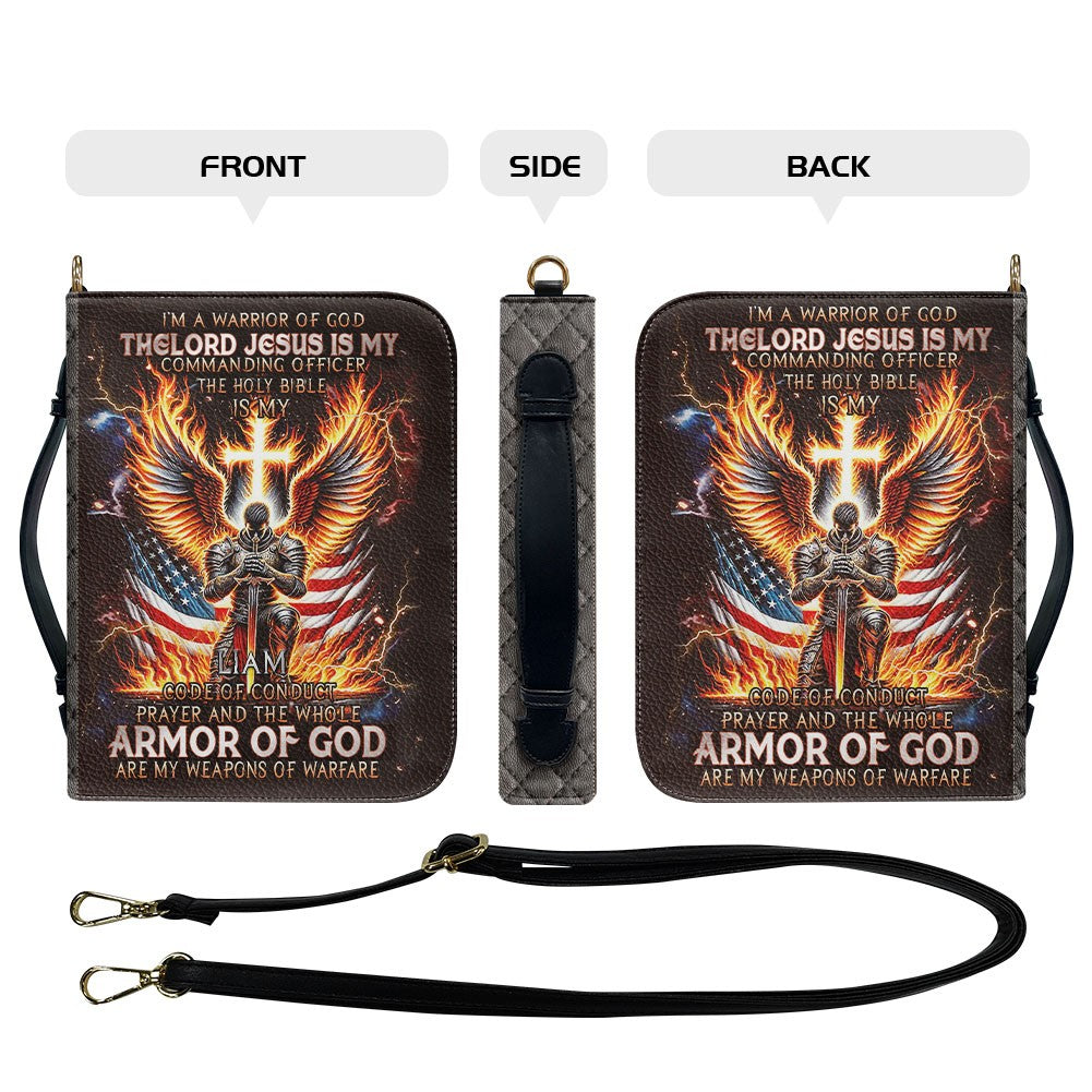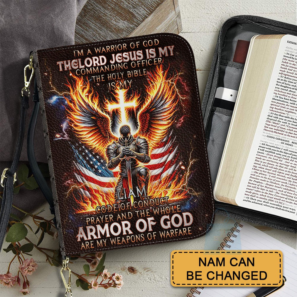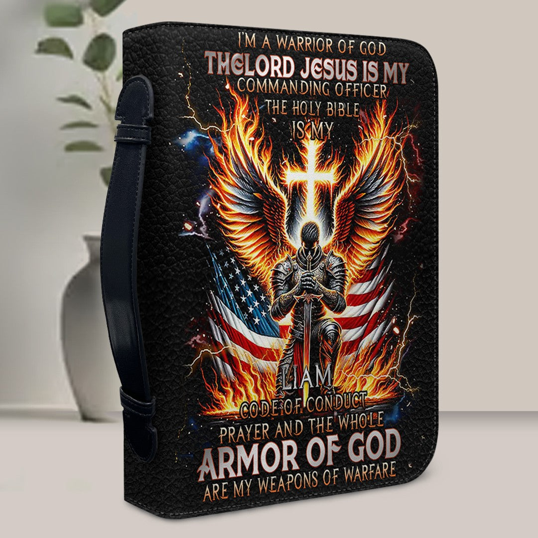 Elegant Floral Personalized Bible Cover for Men – I'm A Warrior Of God – Custom Name – CHRISTIANARTBAG