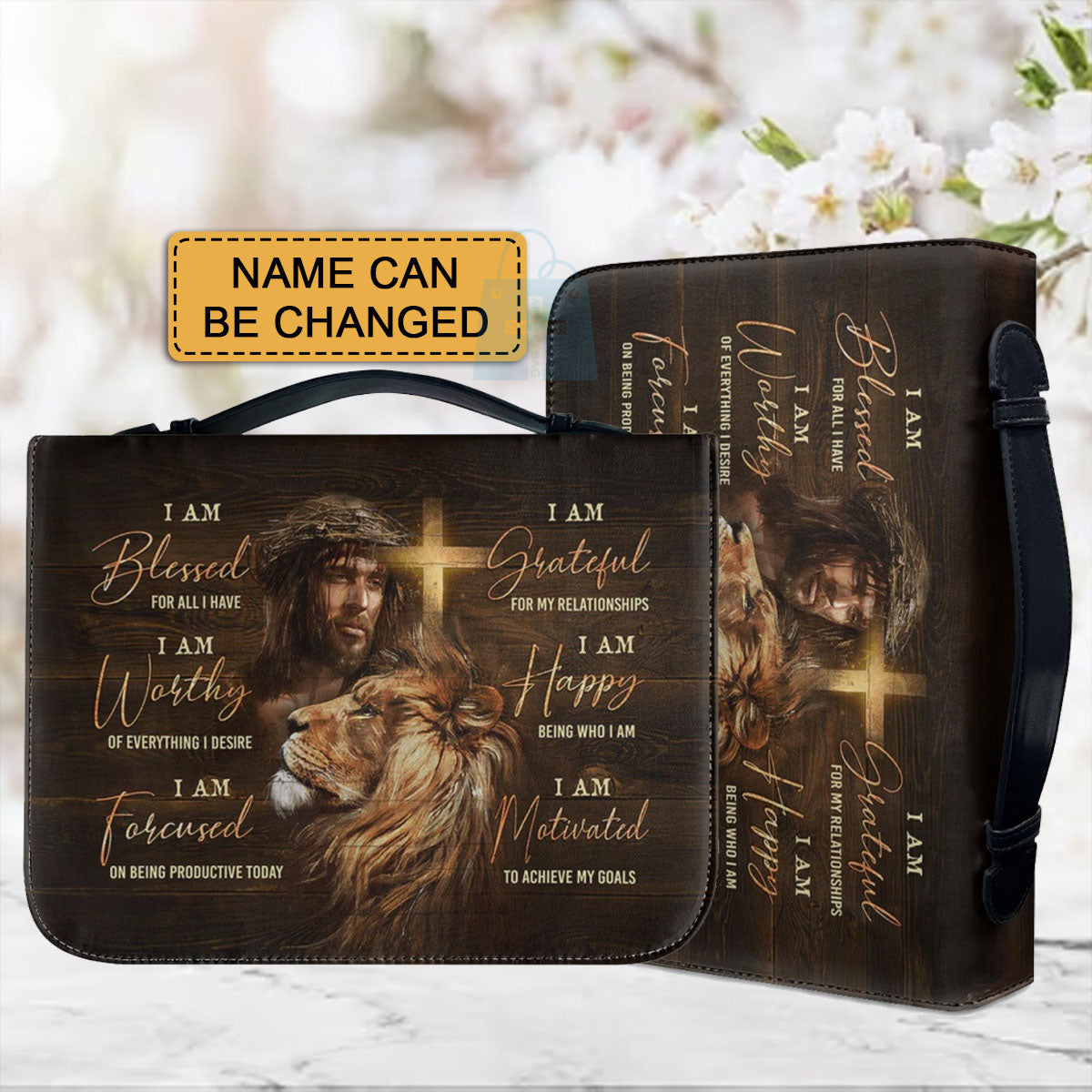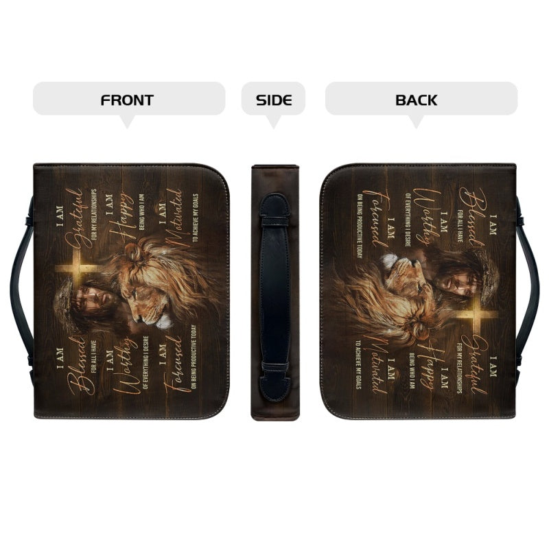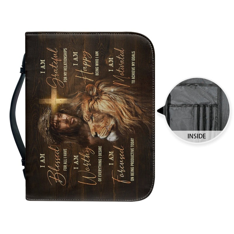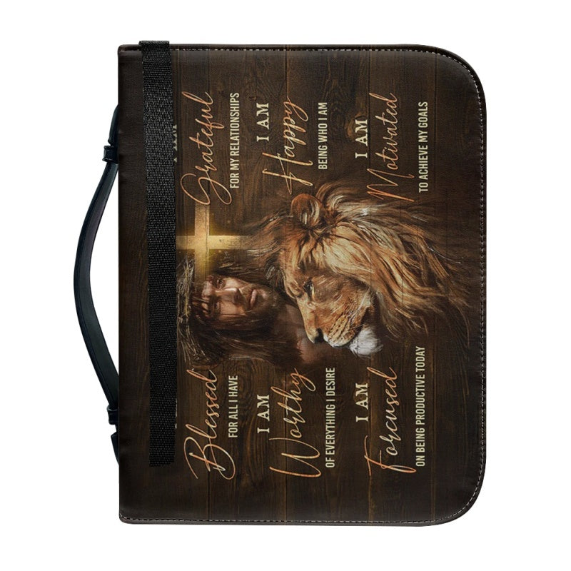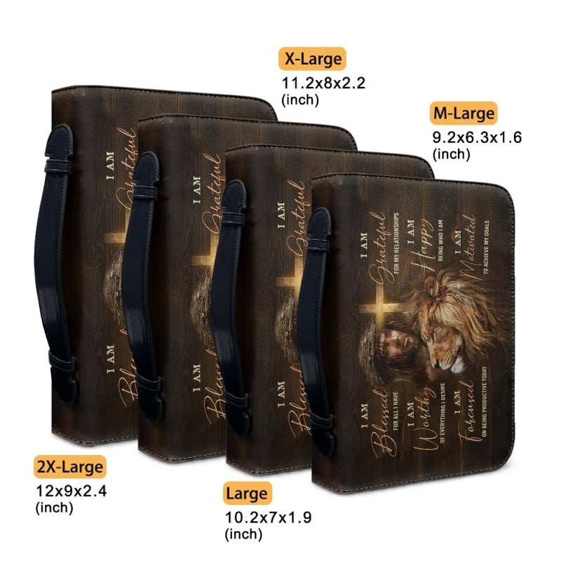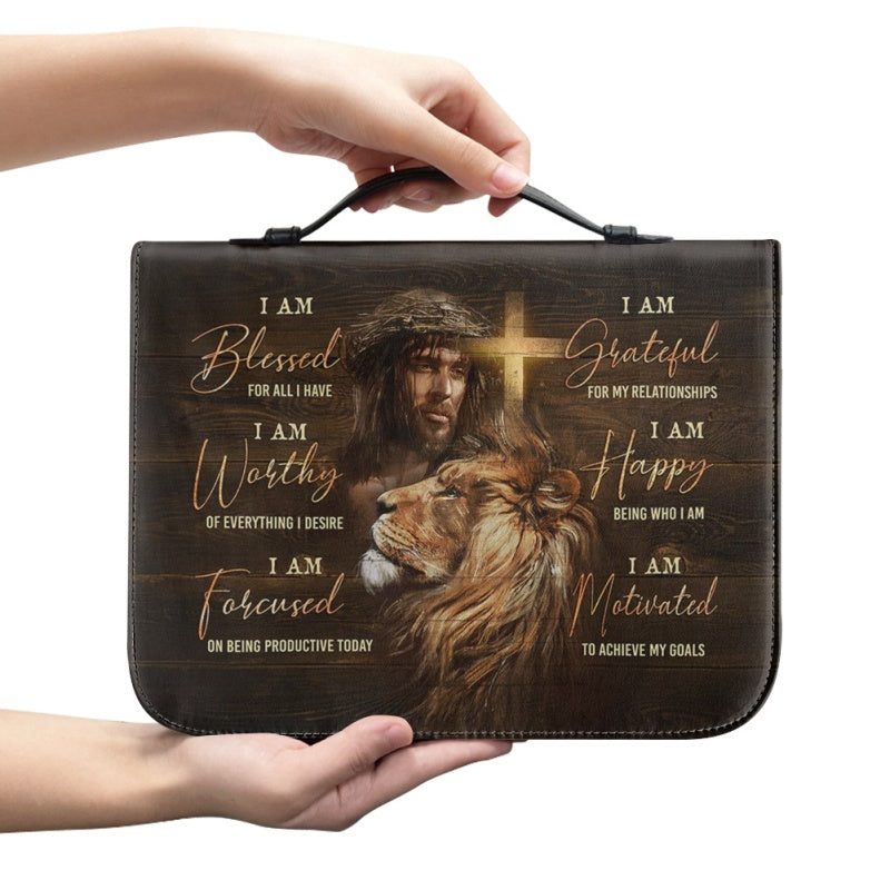 Empowering Personalized Bible Cover with Lion Imagery - Affirmation & Faith | CHRISTIANARTBAG CABBBCV02190324.