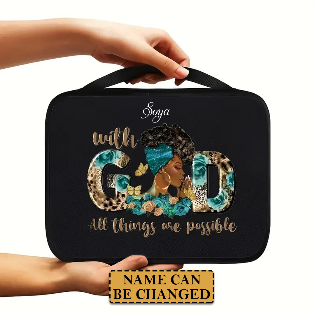 Empowering 'With GOD All Things Are Possible' Personalized Canvas Bible Cover | Bold & Stylish | CHRISTIANARTBAG