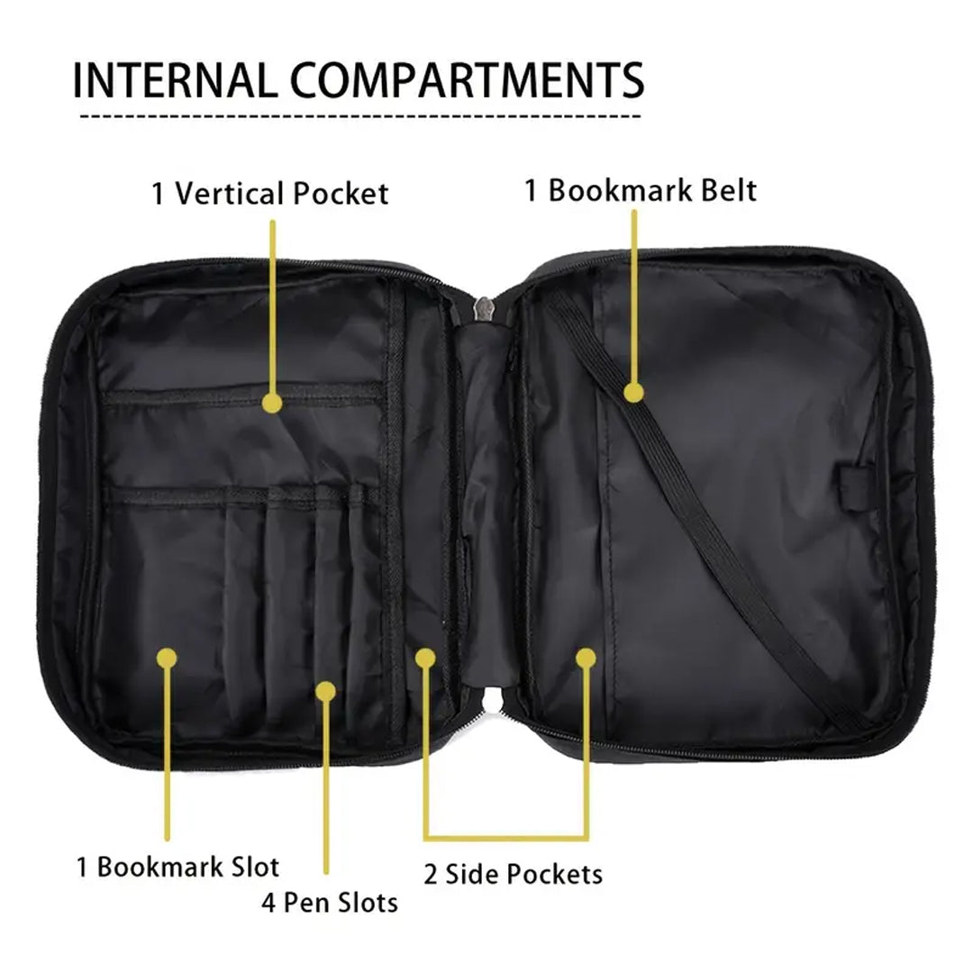 Our Bible cover is designed for convenience. It boasts a sturdy handle, comfortable to hold and securely stitched to the spine. You can also slip it into a larger bag, making it ideal for church, Bible study, and travel.