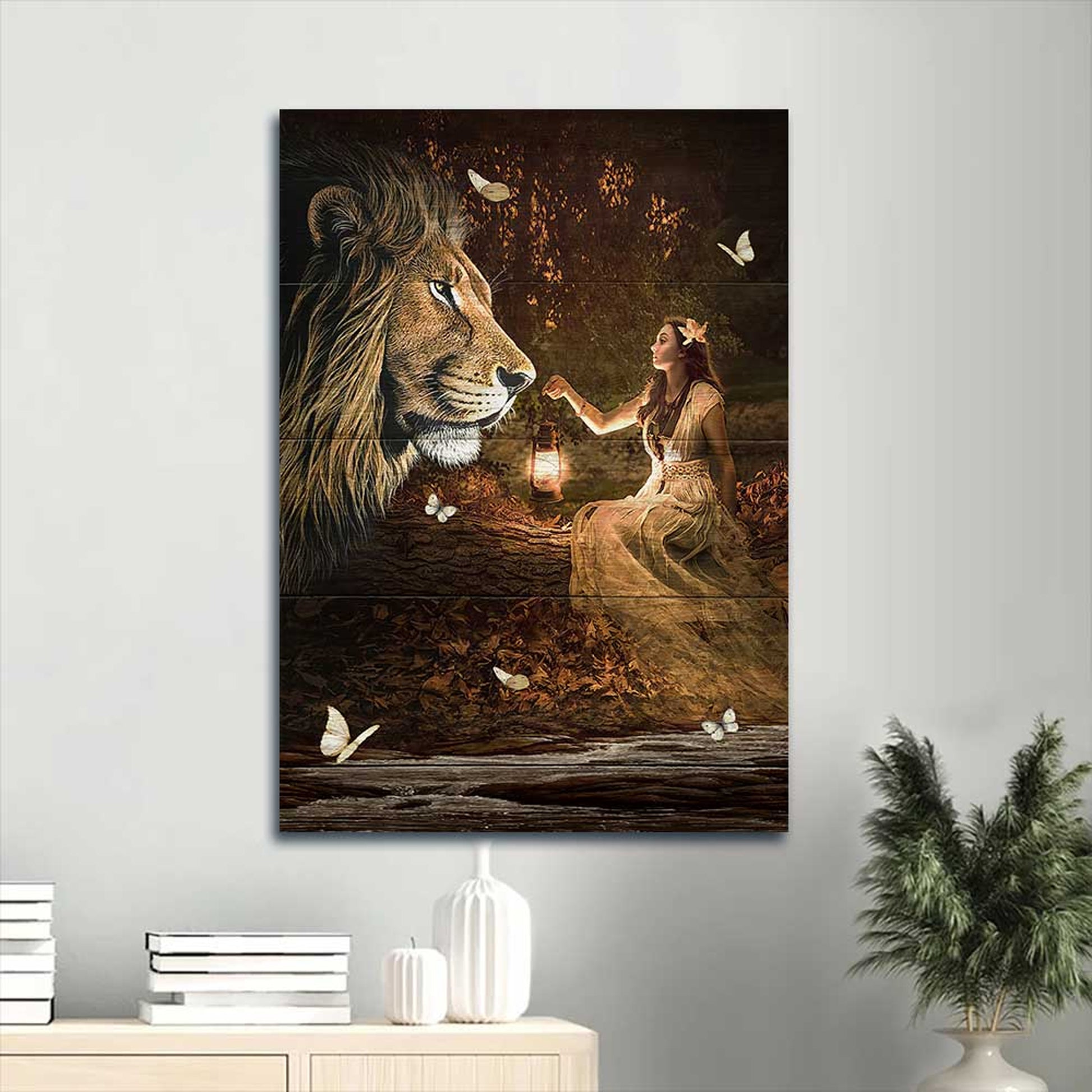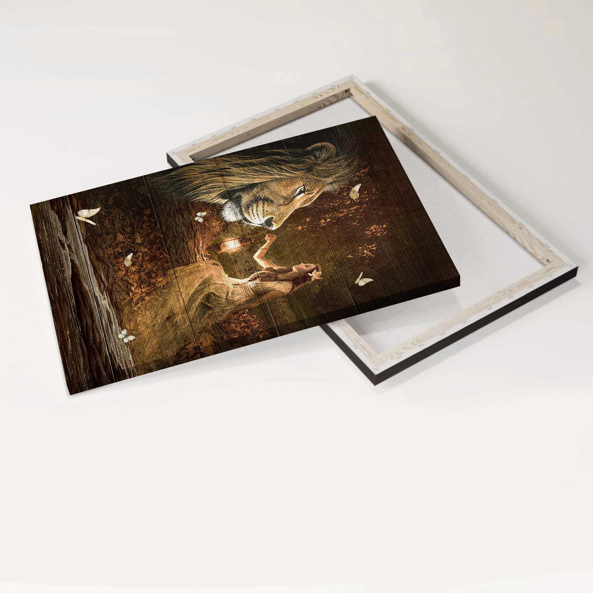 Enchanted Forest Queen & Lion Canvas Print - CHRISTIANARTBAG | Mystical Nature-Inspired Wall Art
