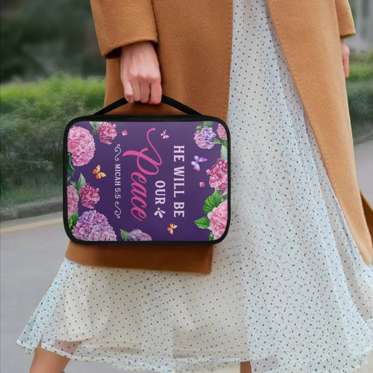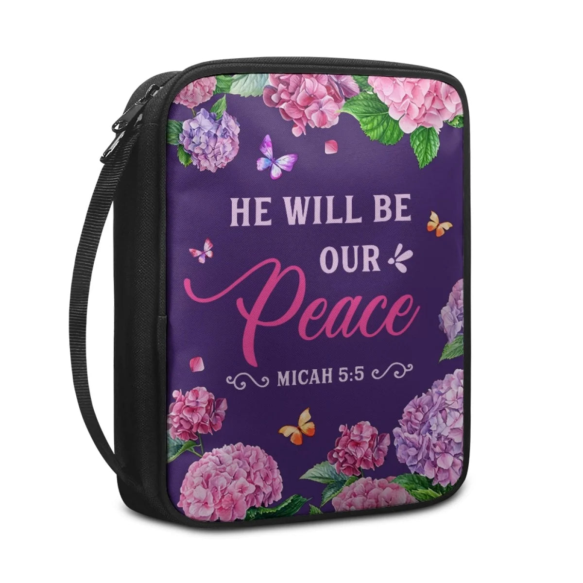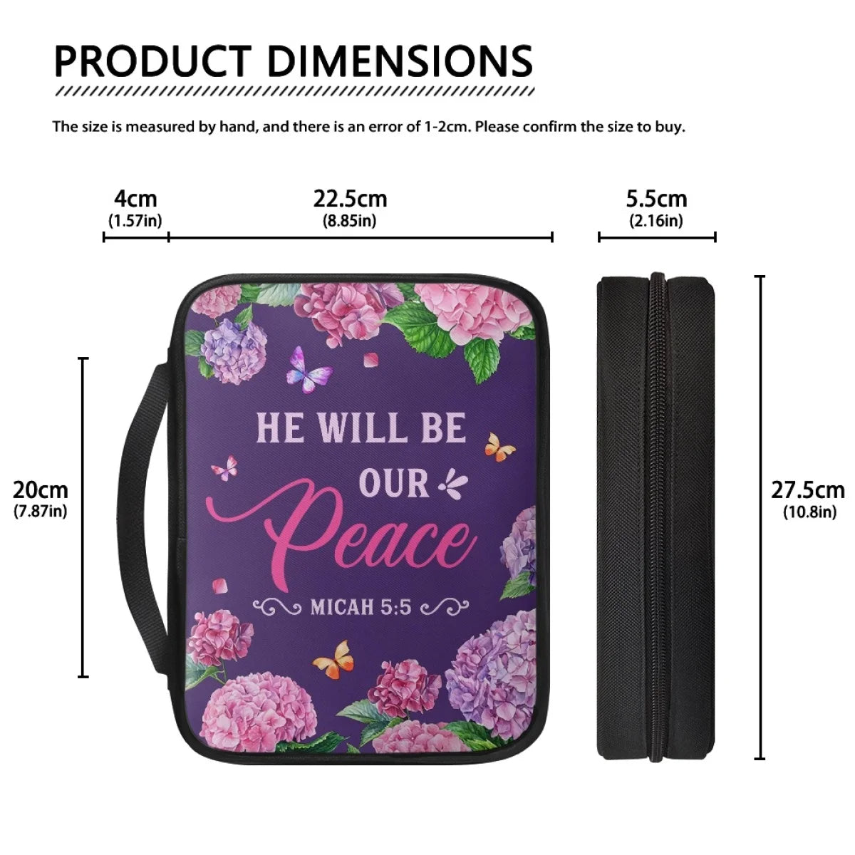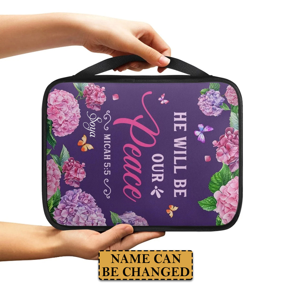 Floral 'He Will Be Our Peace' Canvas Bible Cover – Customizable with Your Name | CHRISTIANARTBAG