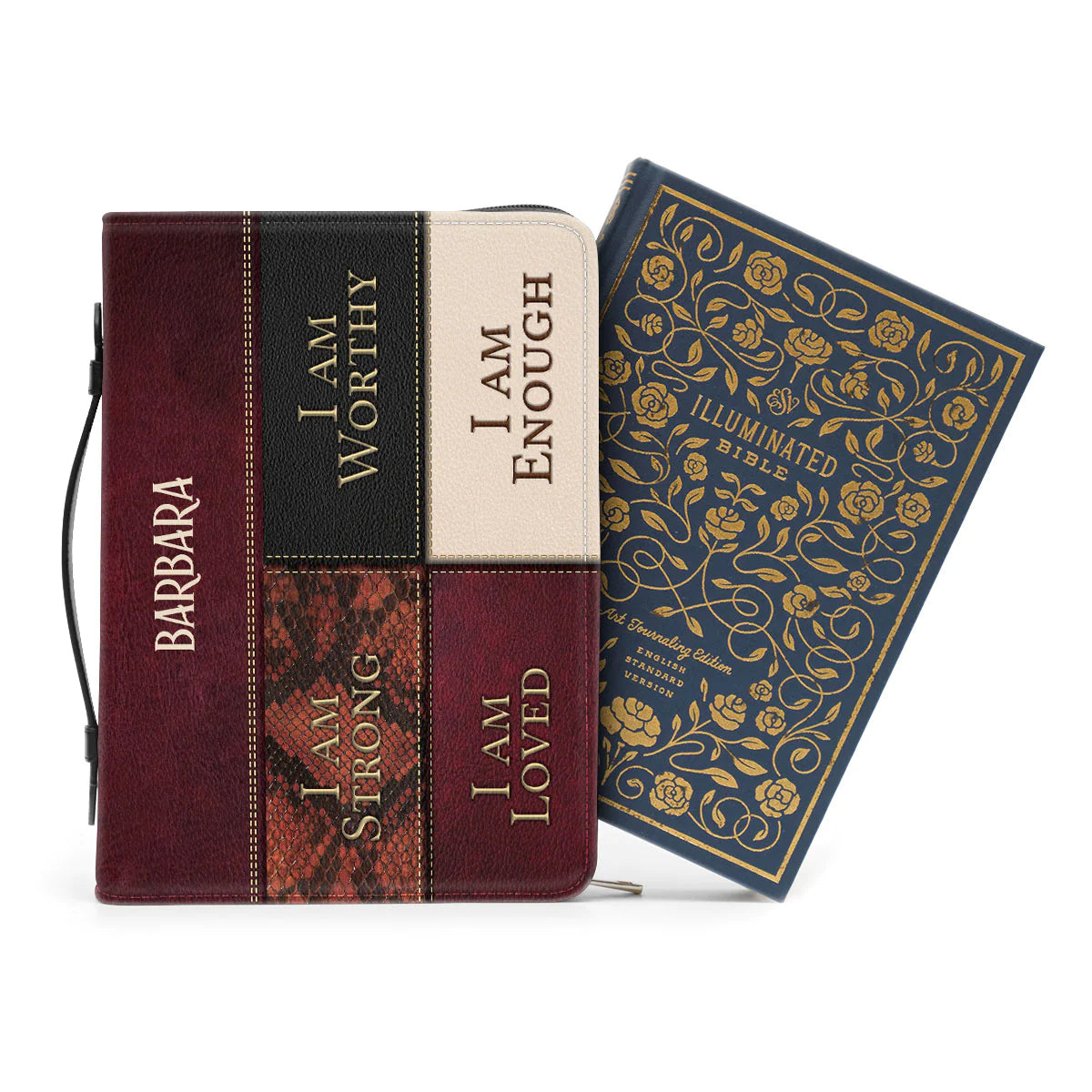 Christianart Bible Cover - I Am Strong - I Am Worthy - Personalized Bible Cover - Bible Cover for Women - CABBBCV01070324.