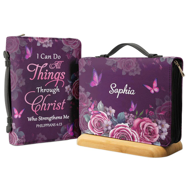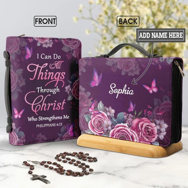 Christianart Bible Cover, Empowerment Through Faith Bible Cover - Philippians 4:13 Floral Design.