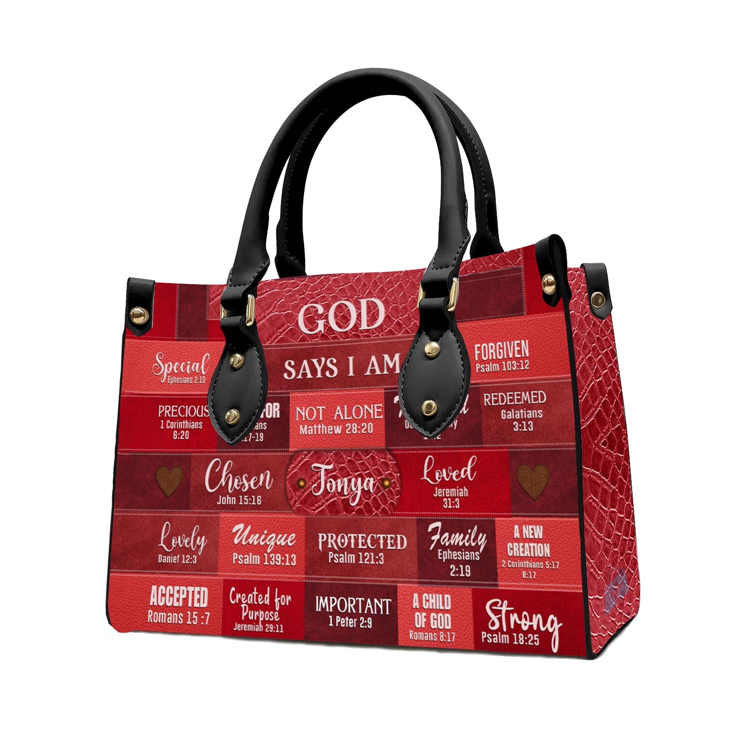 Inspirational Scripture Leather Handbag - Custom Name CHRISTIANARTBAG Tote - GOD Says I Am Red Leather Handbag.
