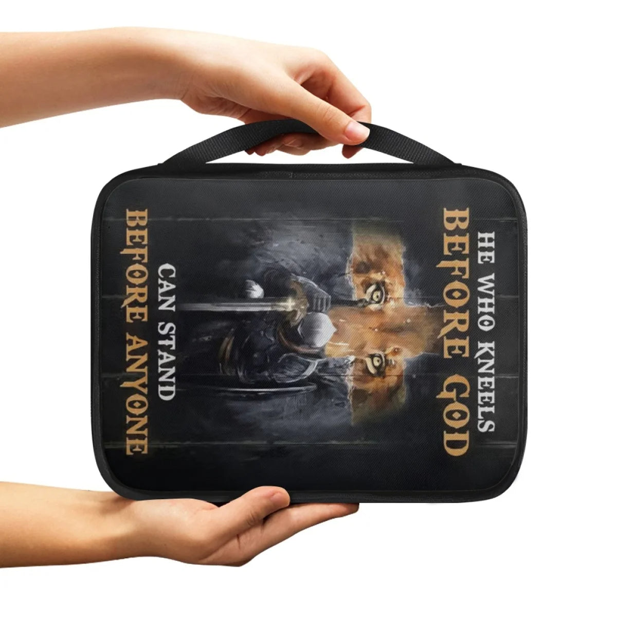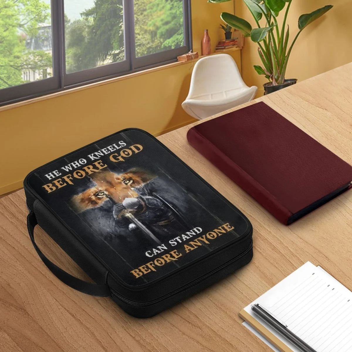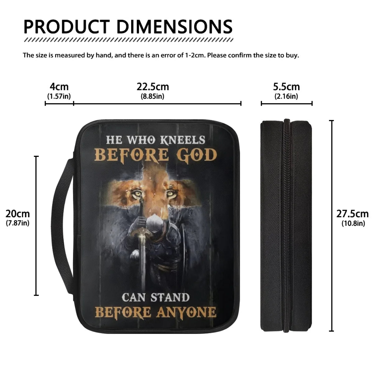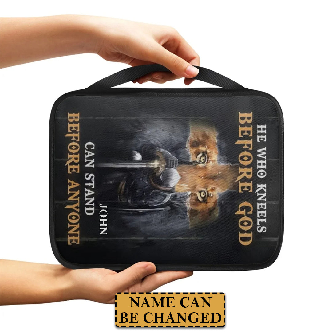 Knight 'He Who Kneels Before God' Canvas Bible Cover – Customizable Name | CHRISTIANARTBAG
