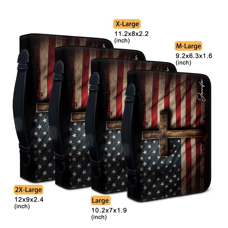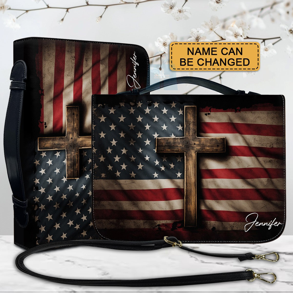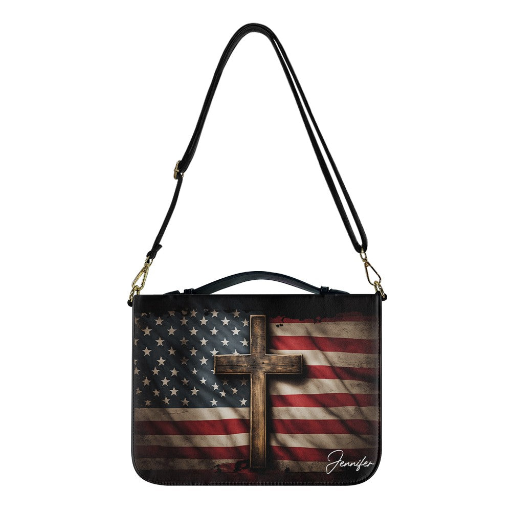 Patriotic American Flag & Cross Bible Cover – Custom Name Option | CHRISTIANARTBAG
