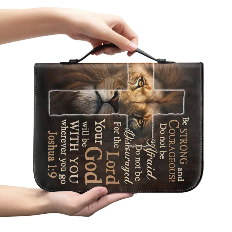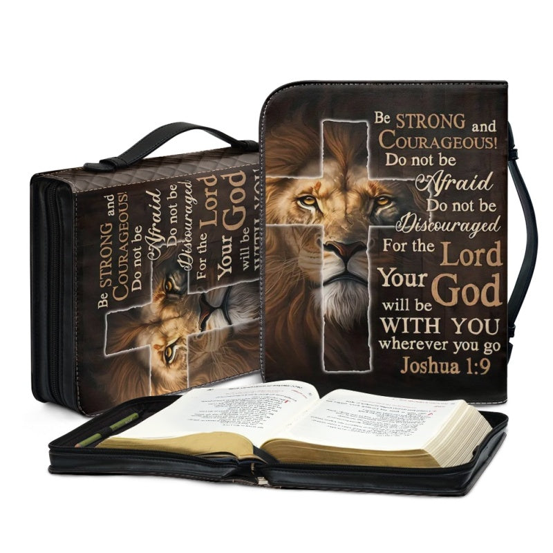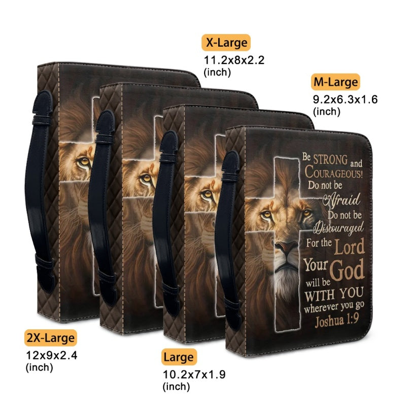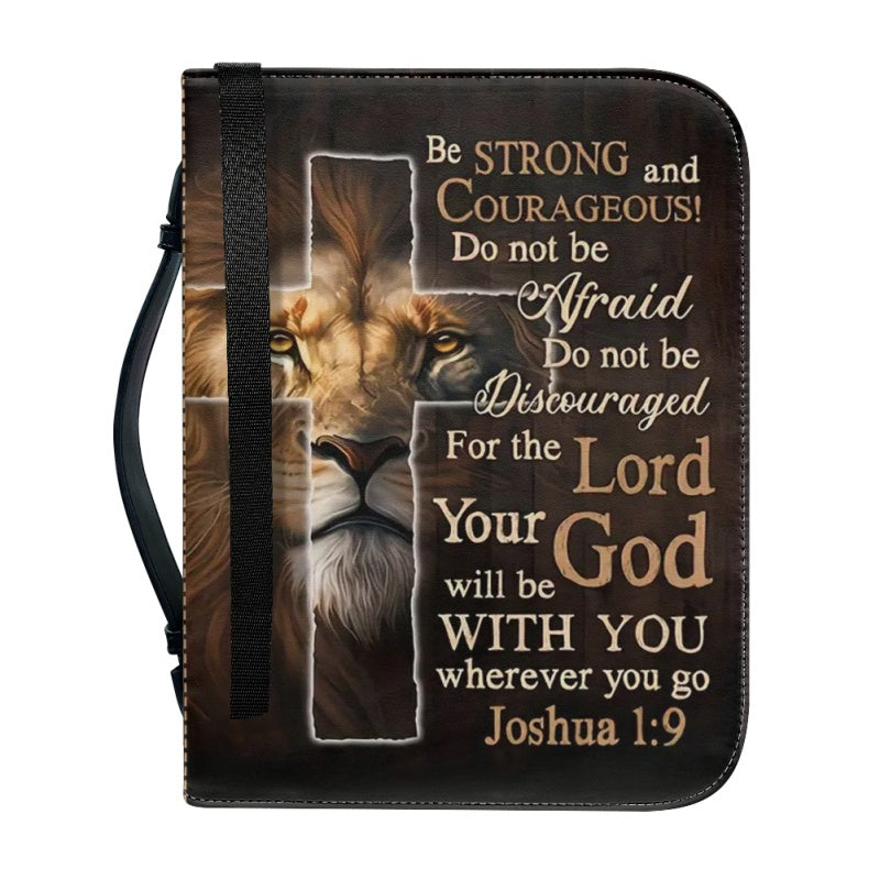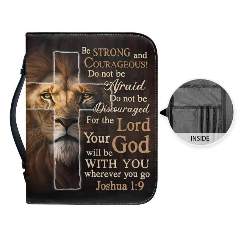 Featuring a striking lion's face and a powerful Scripture from Joshua 1:9, your cover boldly reminds you to be strong and courageous, free from fear, for the Lord is always with you. This heat-debossed design adds an elegant and inspirational touch.