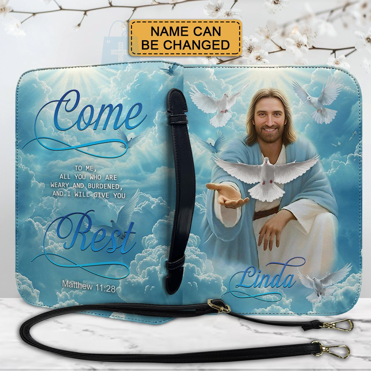 Personalized Bible Cover – Come to me, all who are weary, and I will give you rest, Matthew 11 28 | Christian Gift for Men & Women | Custom Name Option | CHRISTIANARTBAG
