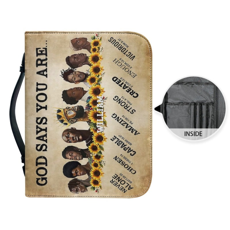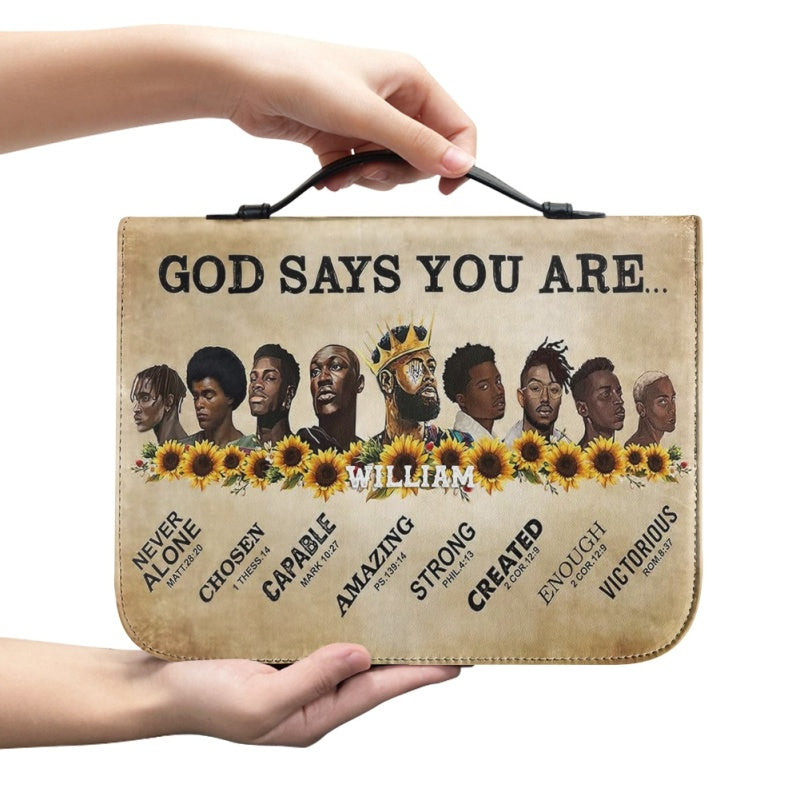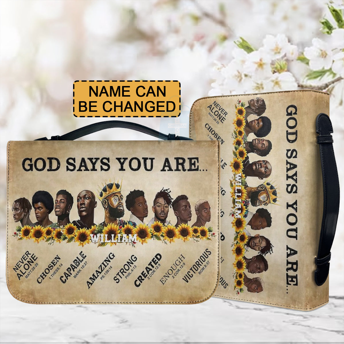 Personalized Bible Cover - God Says You Are - Black Men - Customizable Christian Gift by CHRISTIANARTBAG - CAB01160524.