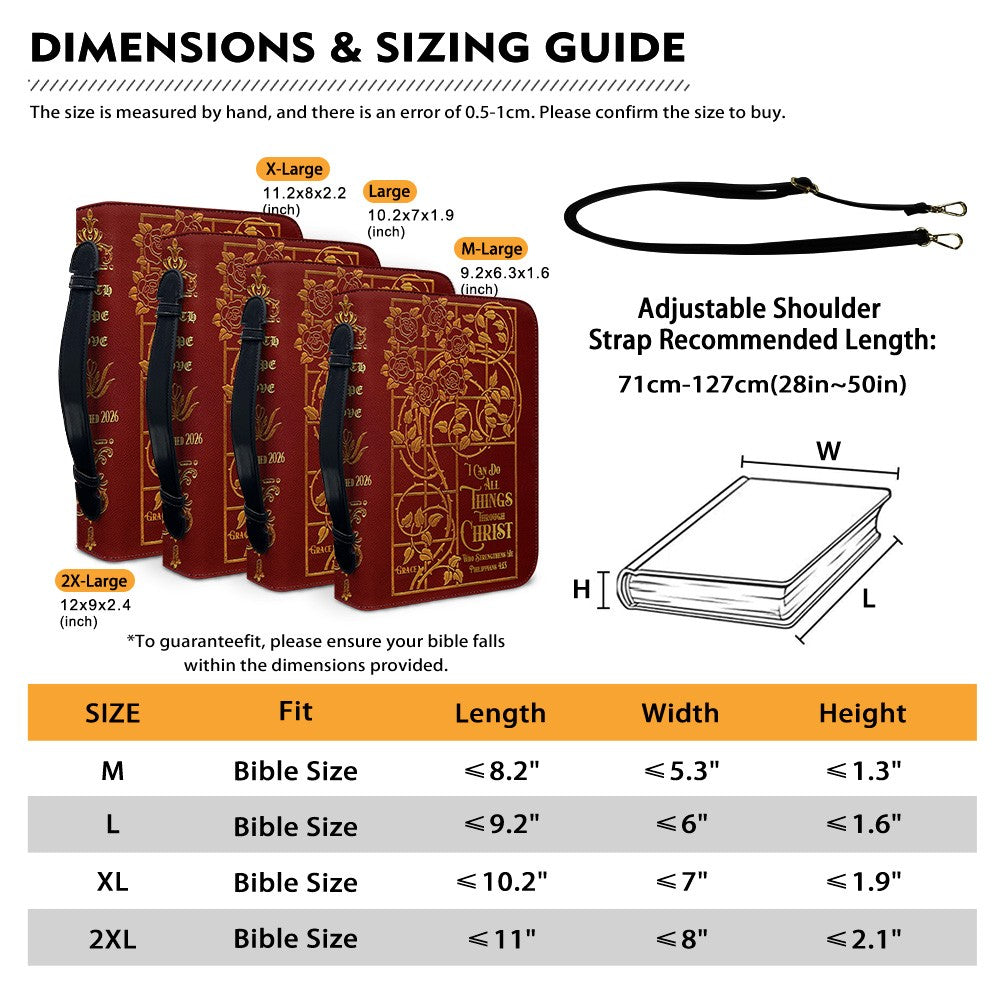 Personalized Bible Cover with Name – Christian Floral Leather Bible Case, Philippians 4:13 | CHRISTIANARTBAG CAB013126