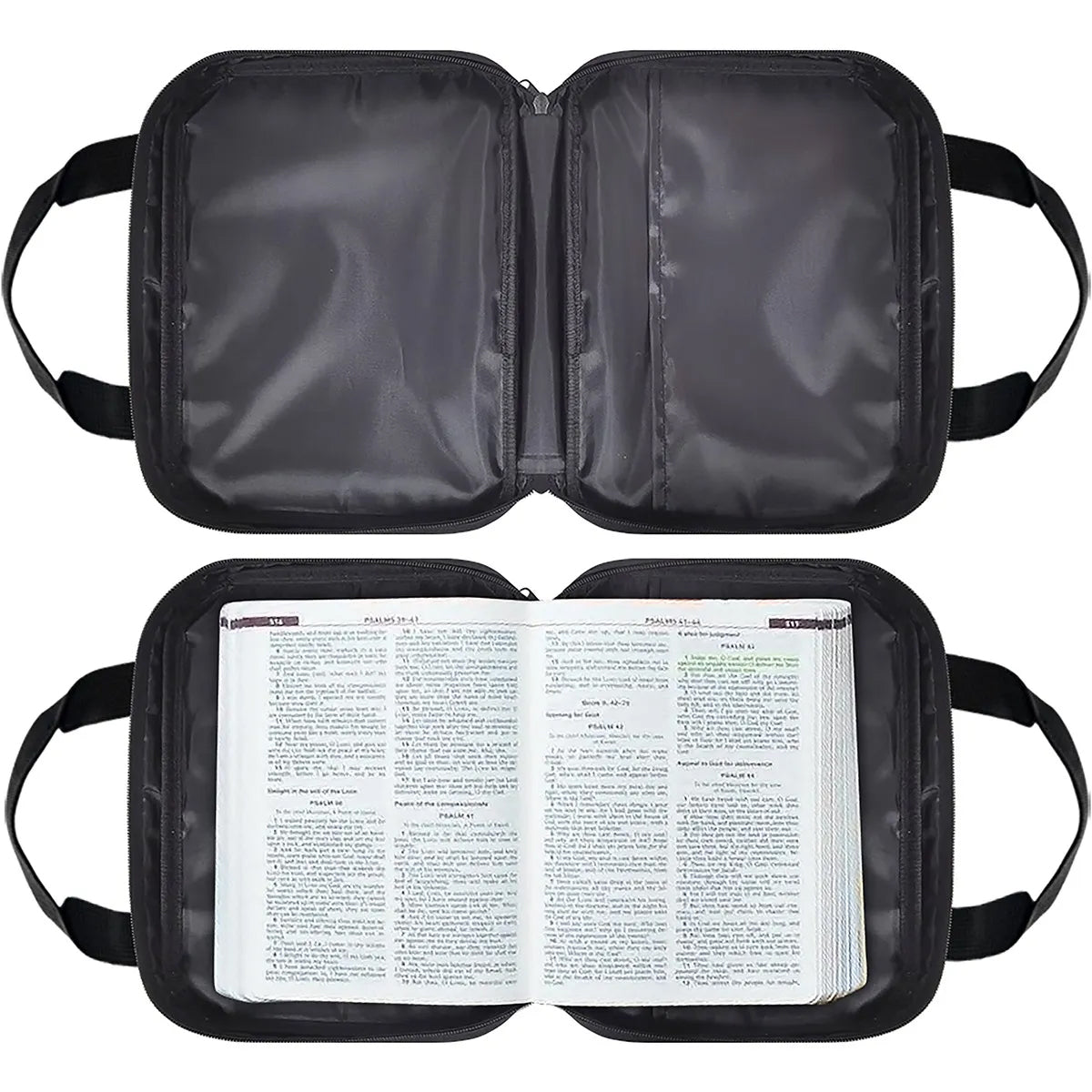 Our Bible cover is designed for convenience. It boasts a sturdy handle, comfortable to hold and securely stitched to the spine. You can also slip it into a larger bag, making it ideal for church, Bible study, and travel.
