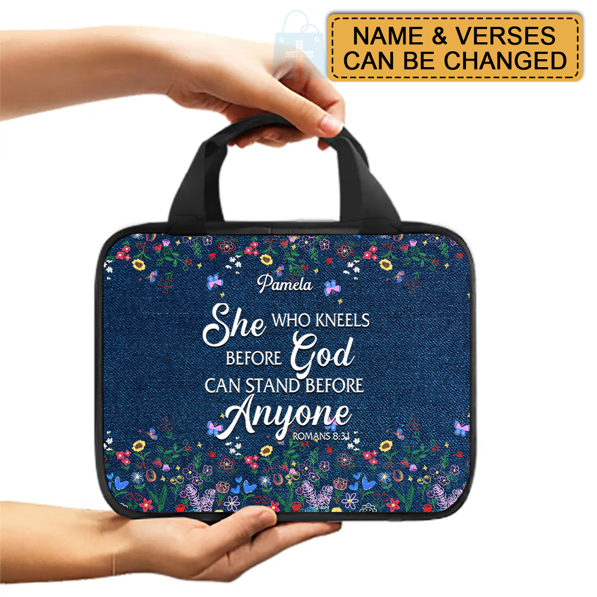 Personalized Canvas Bible Cover with Custom Name & Scripture | CHRISTIANARTBAG – Durable Zip Storage Bag for Women & Girls