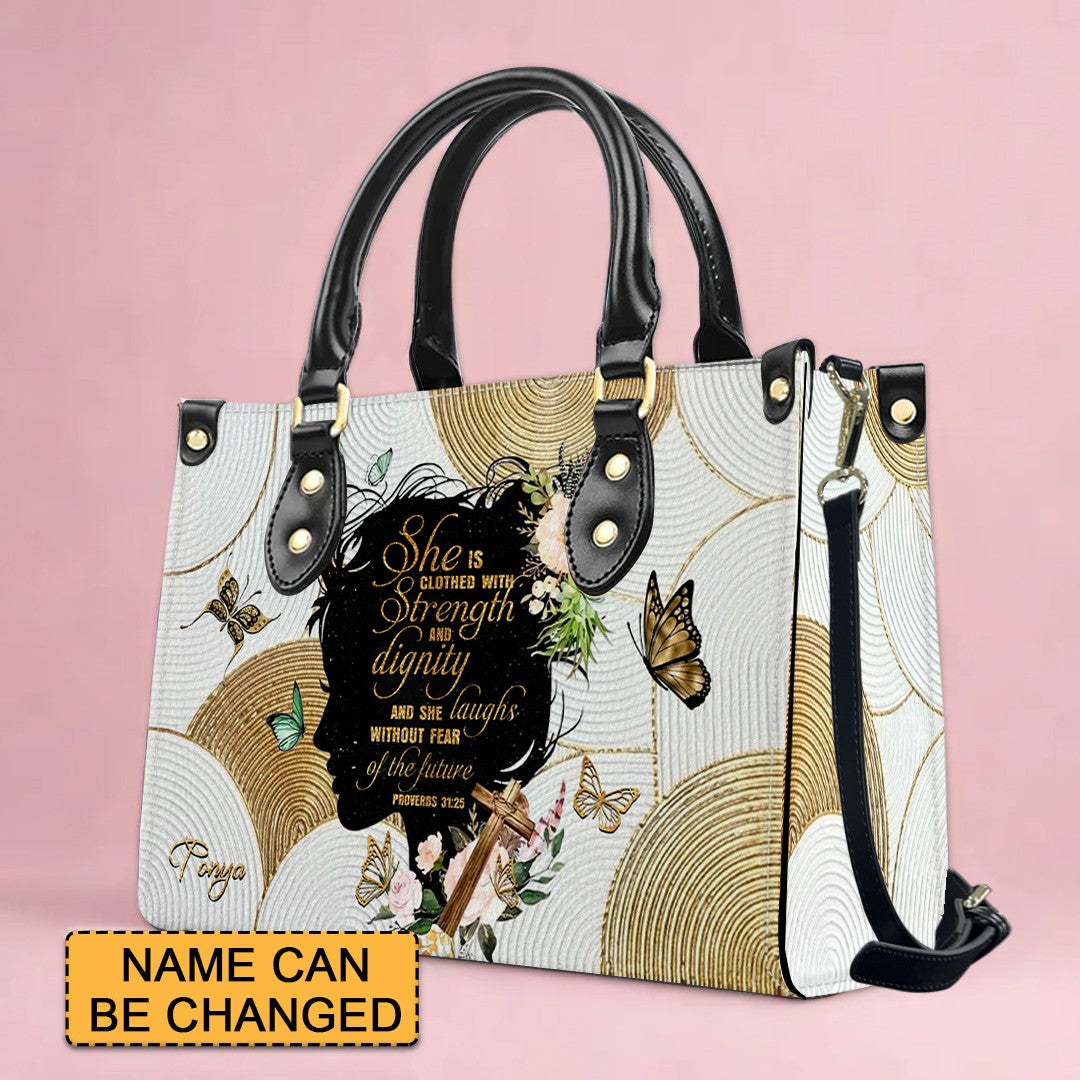 Personalized Christian Handbag – Proverbs 31:25 “Clothed in Strength and Dignity” – Custom Name Faith Tote Bag for Women