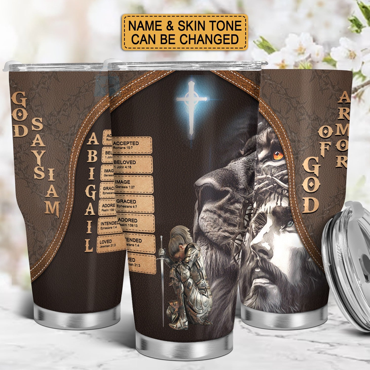 ✨ Personalized Christian Tumbler or Mug – Custom Name & Skin Tone | Armor of God Design | ChristianArtBag