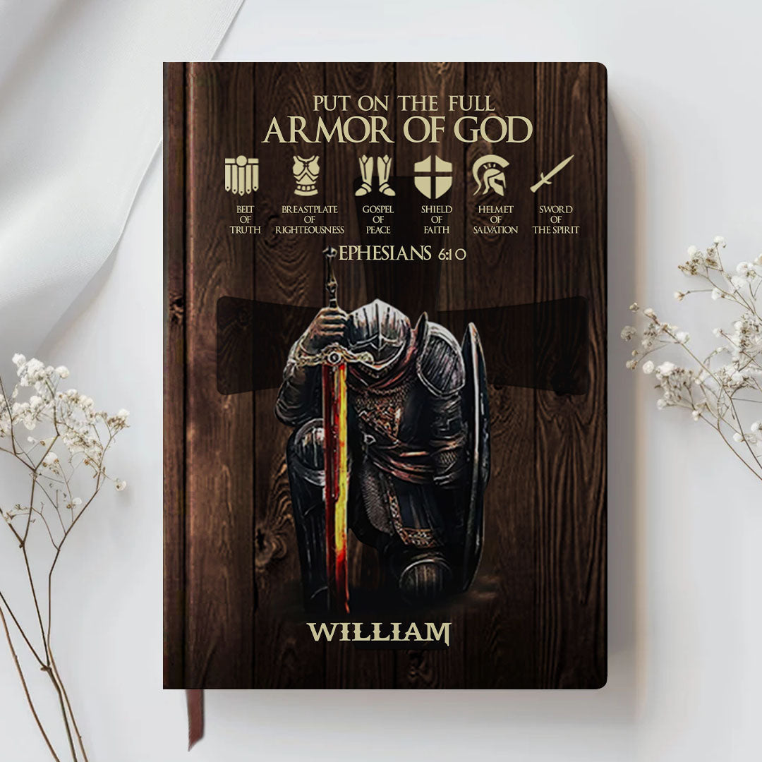 Discover the CHRISTIANARTBAG Personalized Leather Notebook featuring the powerful Armor of God and Names of God design. Crafted from premium leather, this Christian journal can be customized with your name and skin tone, making it a meaningful gift for believers. Perfect for Bible study notes, prayer journaling, or as a thoughtful religious gift for friends and family.