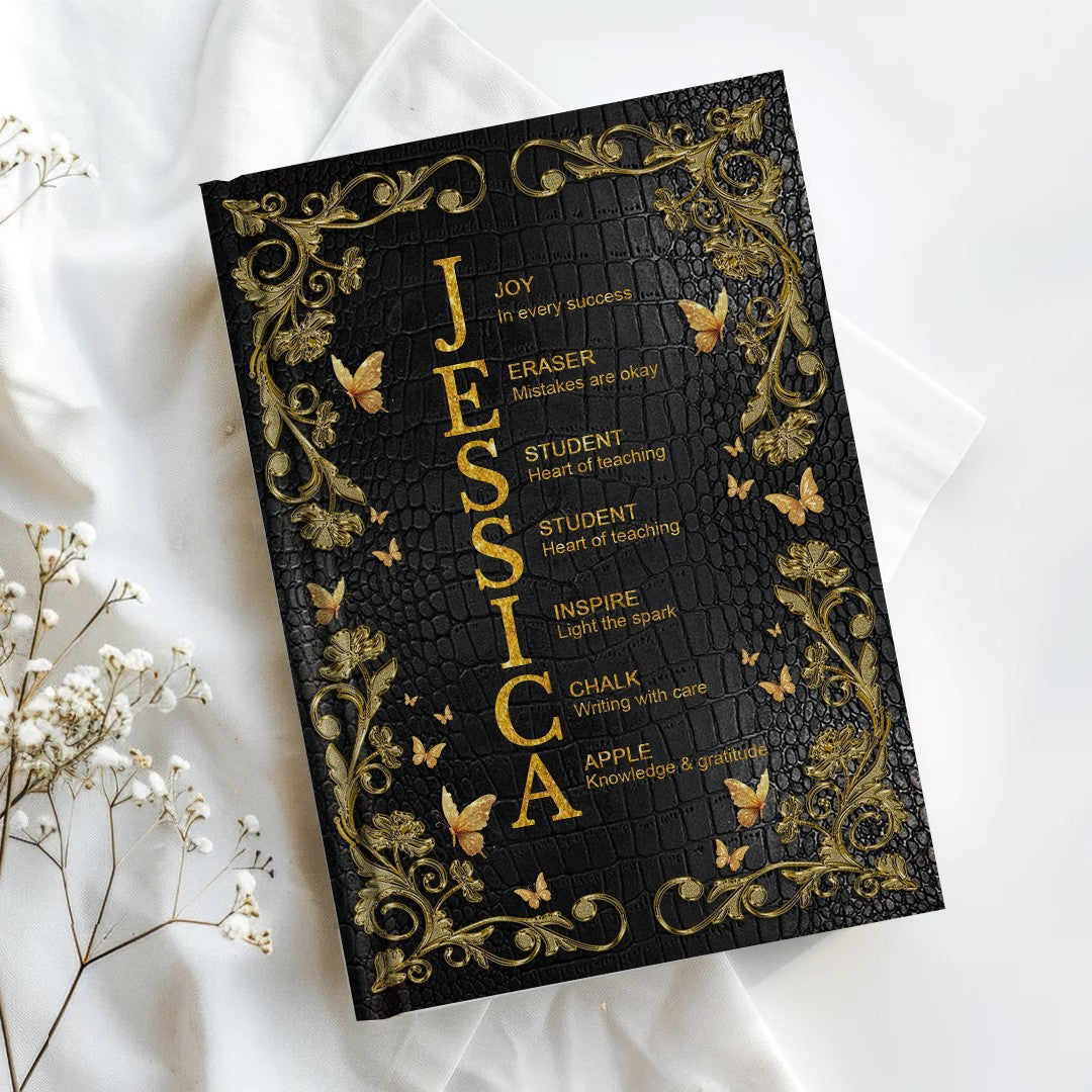 Celebrate the passion and dedication of your profession with this Personalized Leather Notebook, beautifully crafted with your custom name and a career-themed A–Z acrostic. Whether you're a teacher, nurse, firefighter, or any other professional, this elegant notebook transforms your name into a meaningful wordplay that reflects the heart of your work.