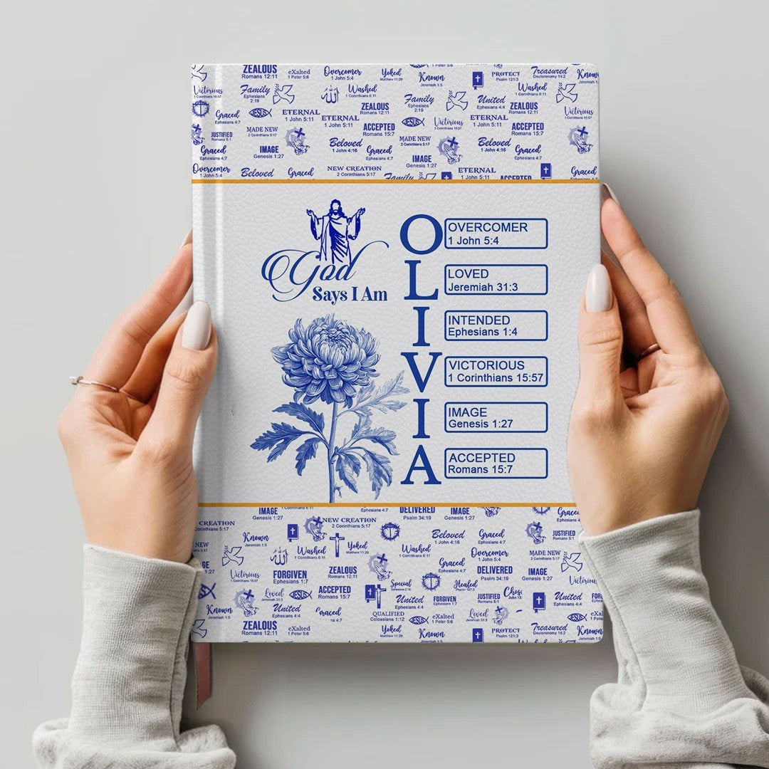 Personalized Leather Notebook with Bible Verses and Birth Month Flowers – Custom Christian Gift