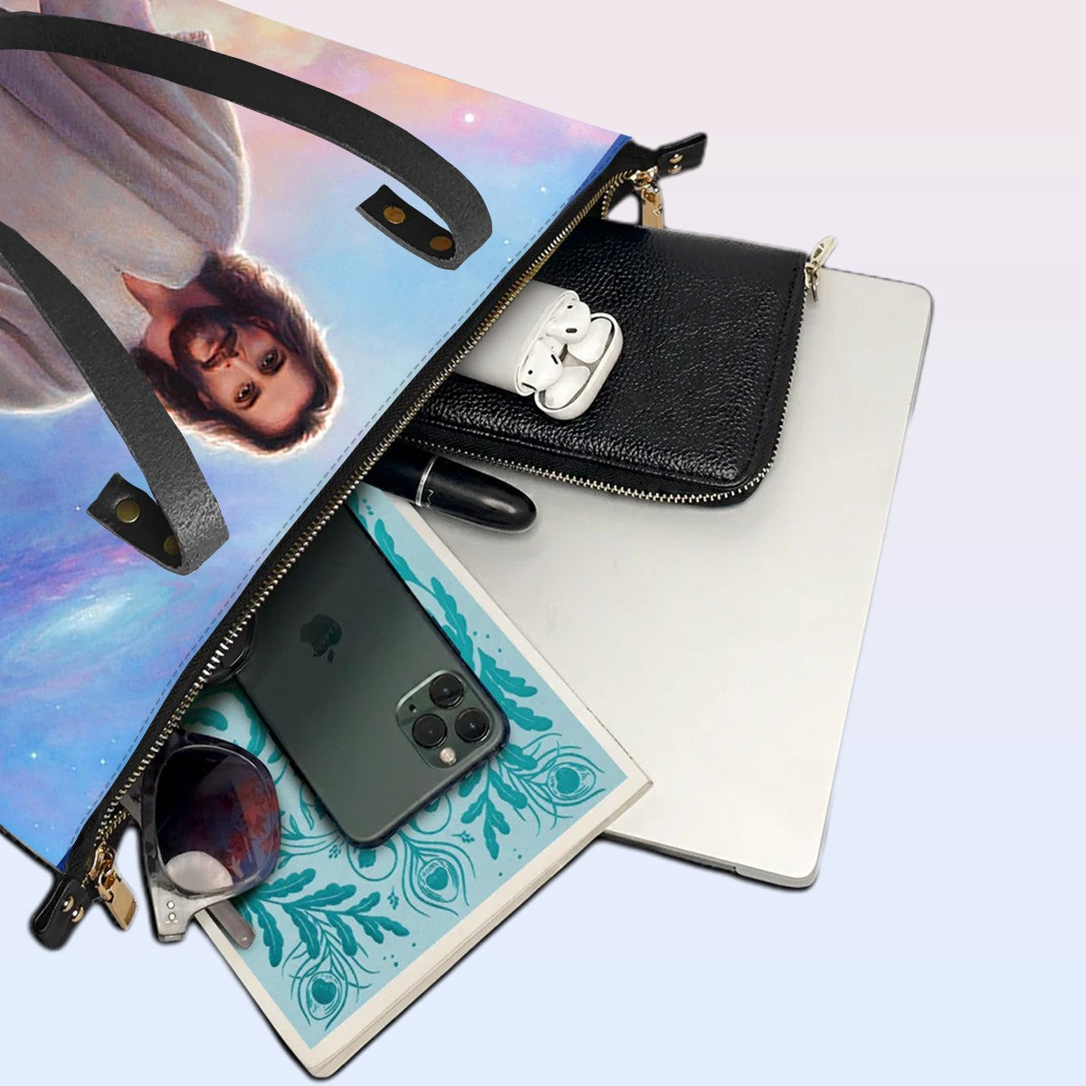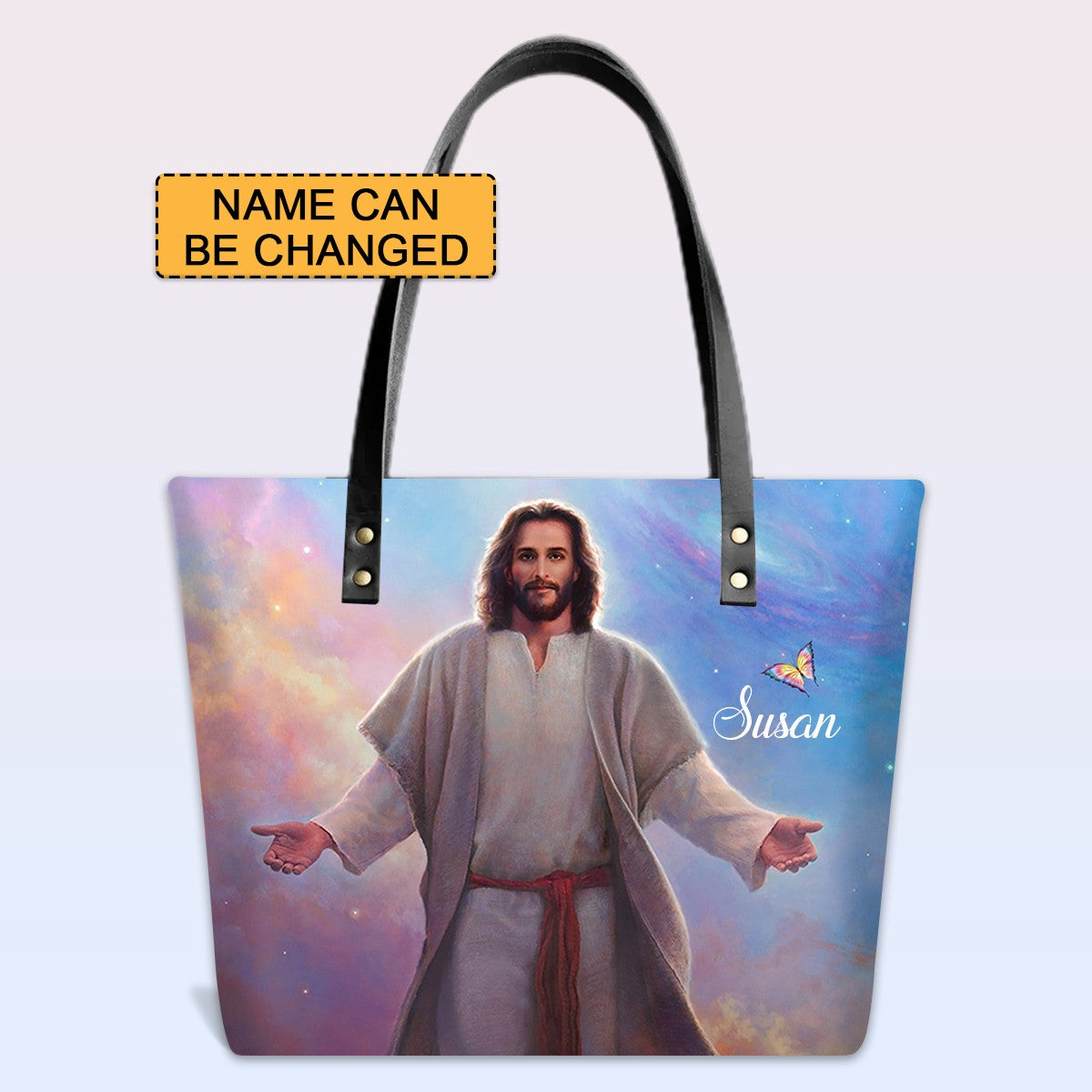Personalized Leather Tote Bag with Bible Verses – Christian Handbag with Jesus Design | Custom Name | CHRISTIANARTBAG Leather TOTE Bag