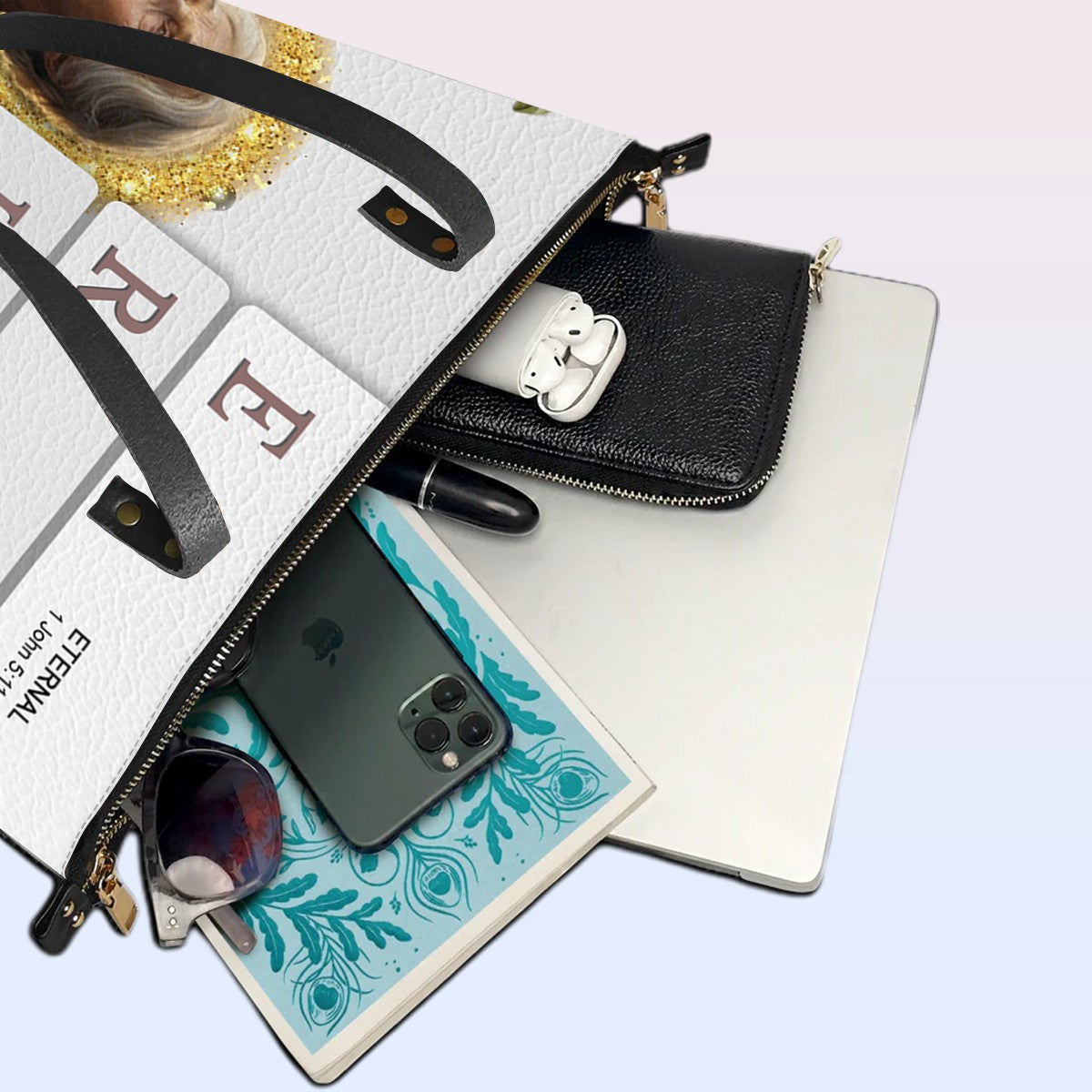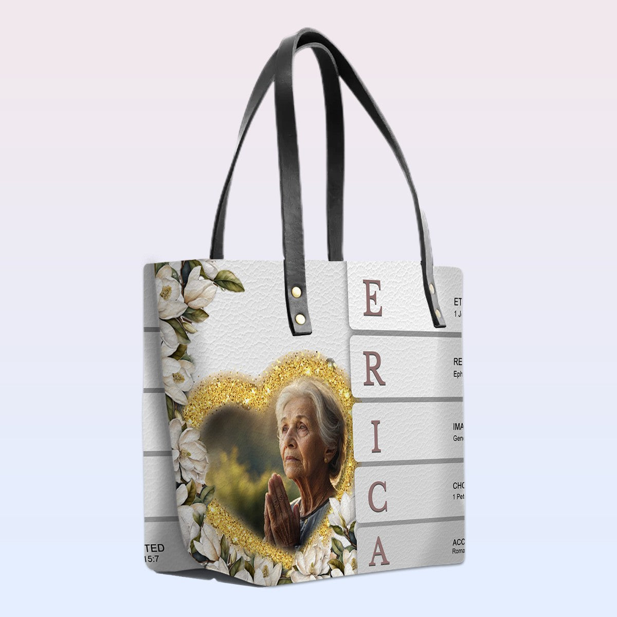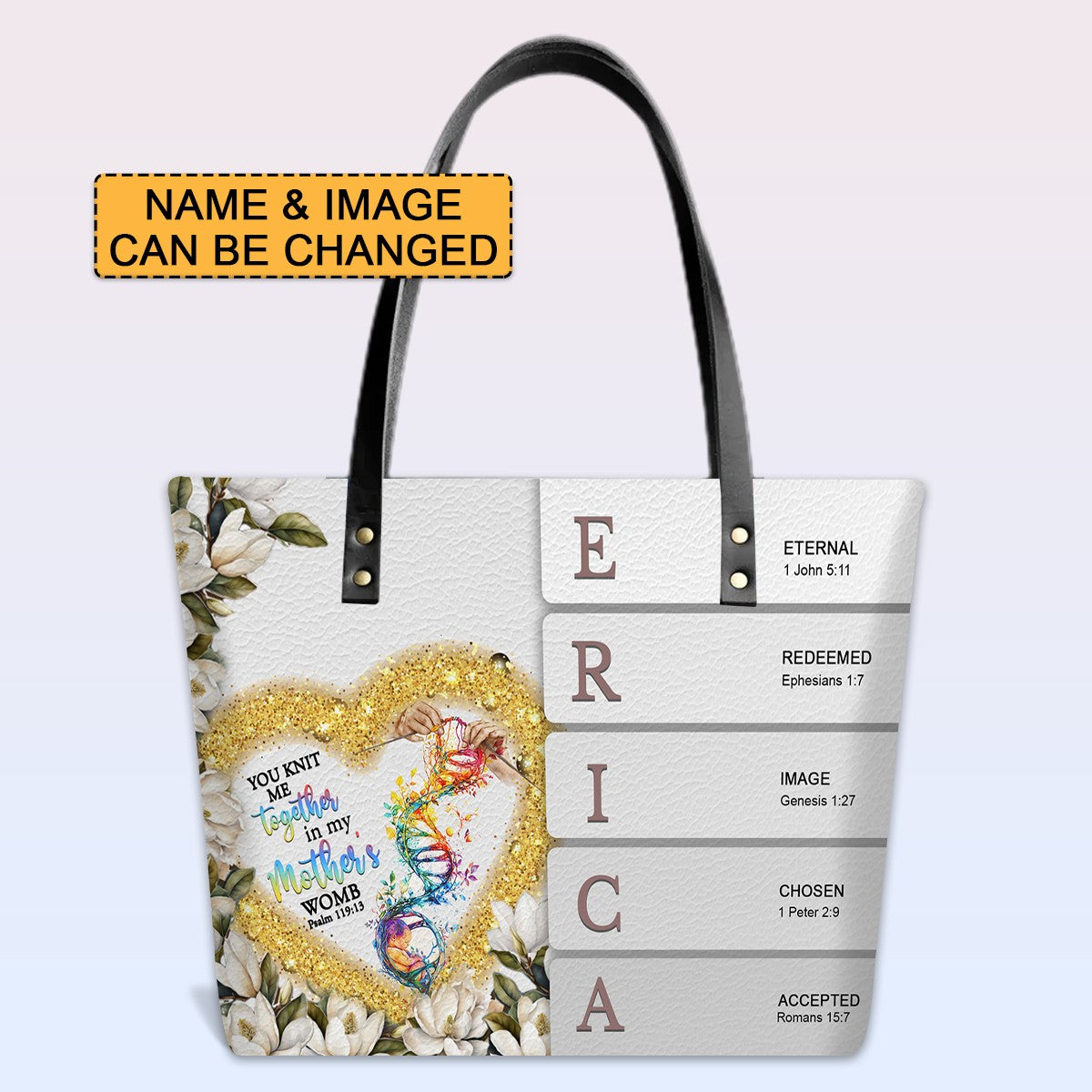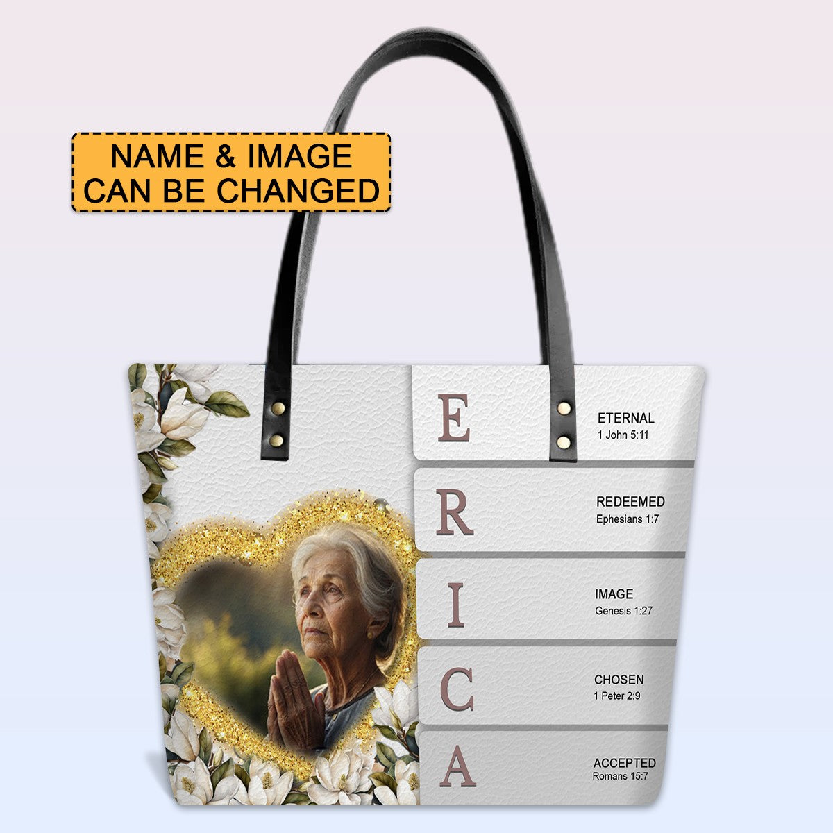 Personalized Leather Tote Bag with Bible Verses – Custom Name and Image – Uncover the sacred meaning of your name | CHRISTIANARTBAG Leather TOTE Bag