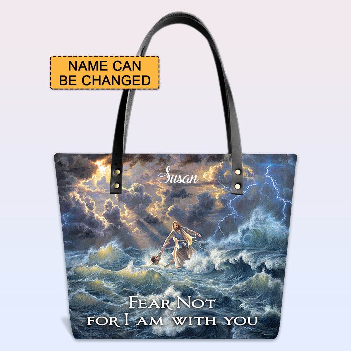 Personalized Leather Tote Bag with Bible Verses – Fear not, for I am with you Isaiah 41 10 | CHRISTIANARTBAG Leather TOTE Bag