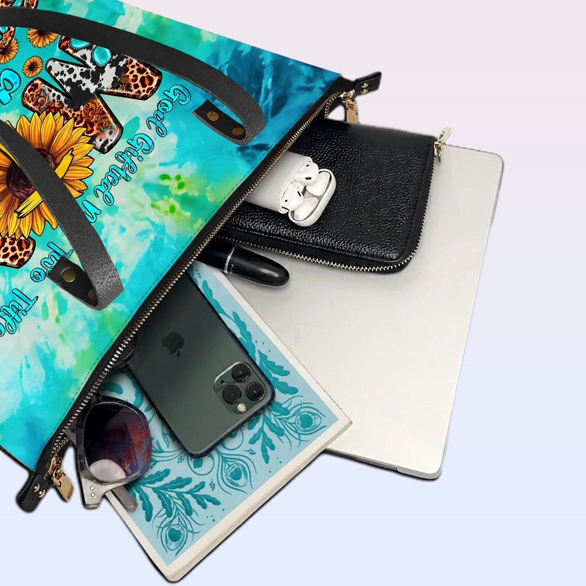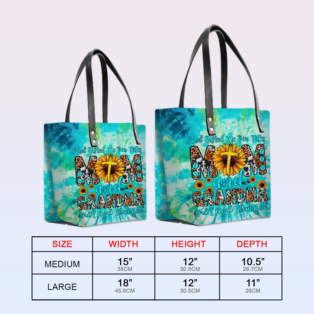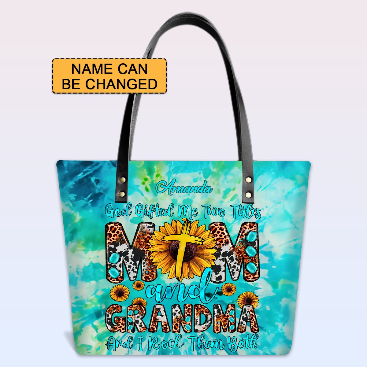Personalized Leather Tote Bag with Bible Verses – God Gifted Me Two Titles Tie Dye | CHRISTIANARTBAG Leather TOTE Bag