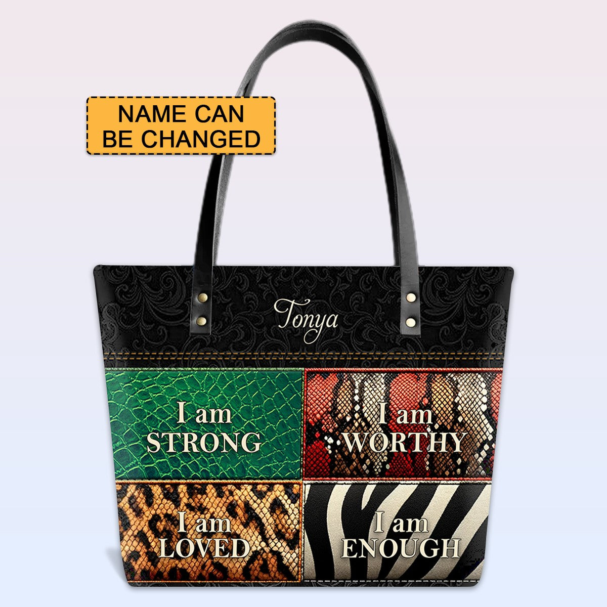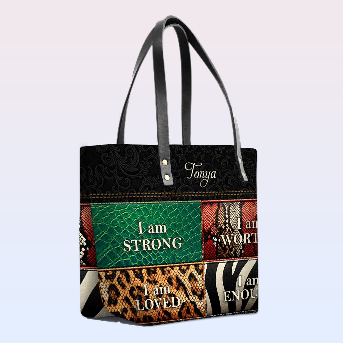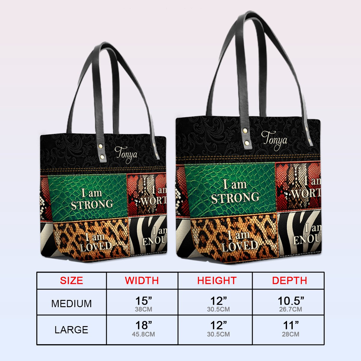 Personalized Leather Tote Bag with Bible Verses – I am STRONG | I am WORTHY | I am LOVED | I am ENOUGH | CHRISTIANARTBAG Leather TOTE Bag