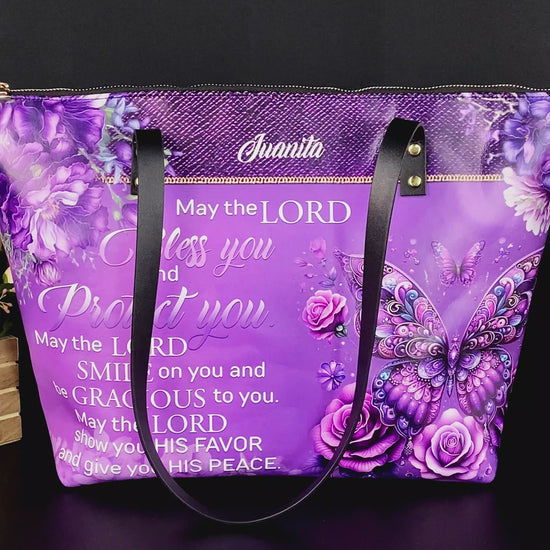 Personalized Leather Tote Bag with Bible Verses – May The Lord Bless You – A Statement of Faith & Strength | CHRISTIANARTBAG Leather TOTE Bag.