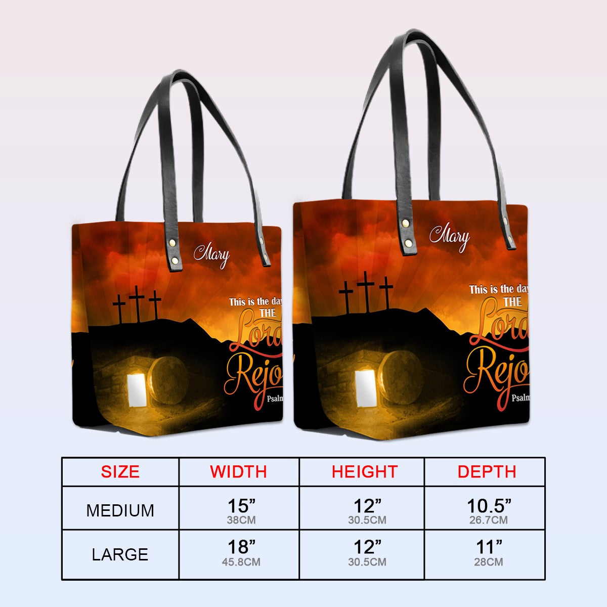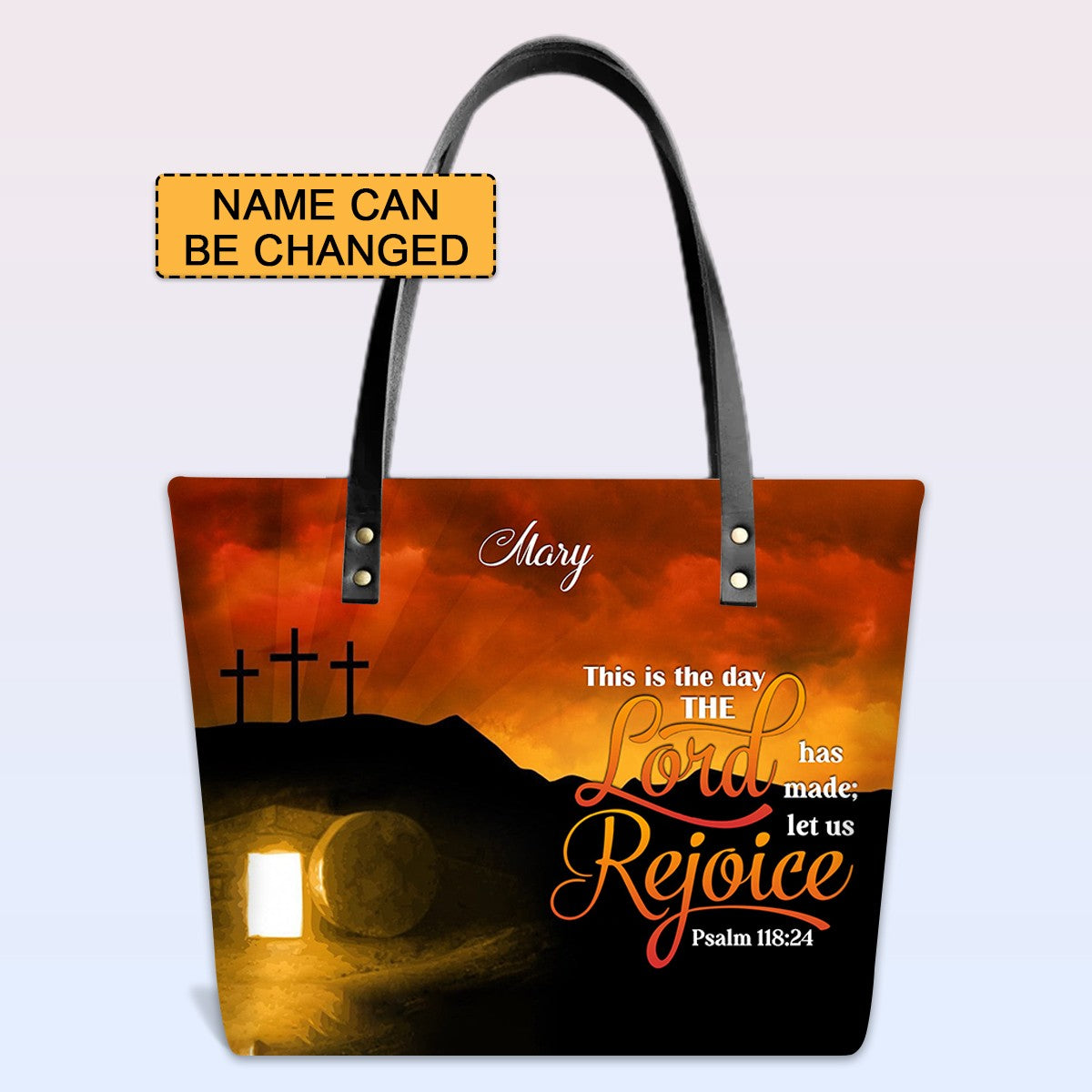 Personalized Leather Tote Bag with Bible Verses – This is the day the Lord has made let us rejoice! Psalm 118 24 | CHRISTIANARTBAG Leather TOTE Bag