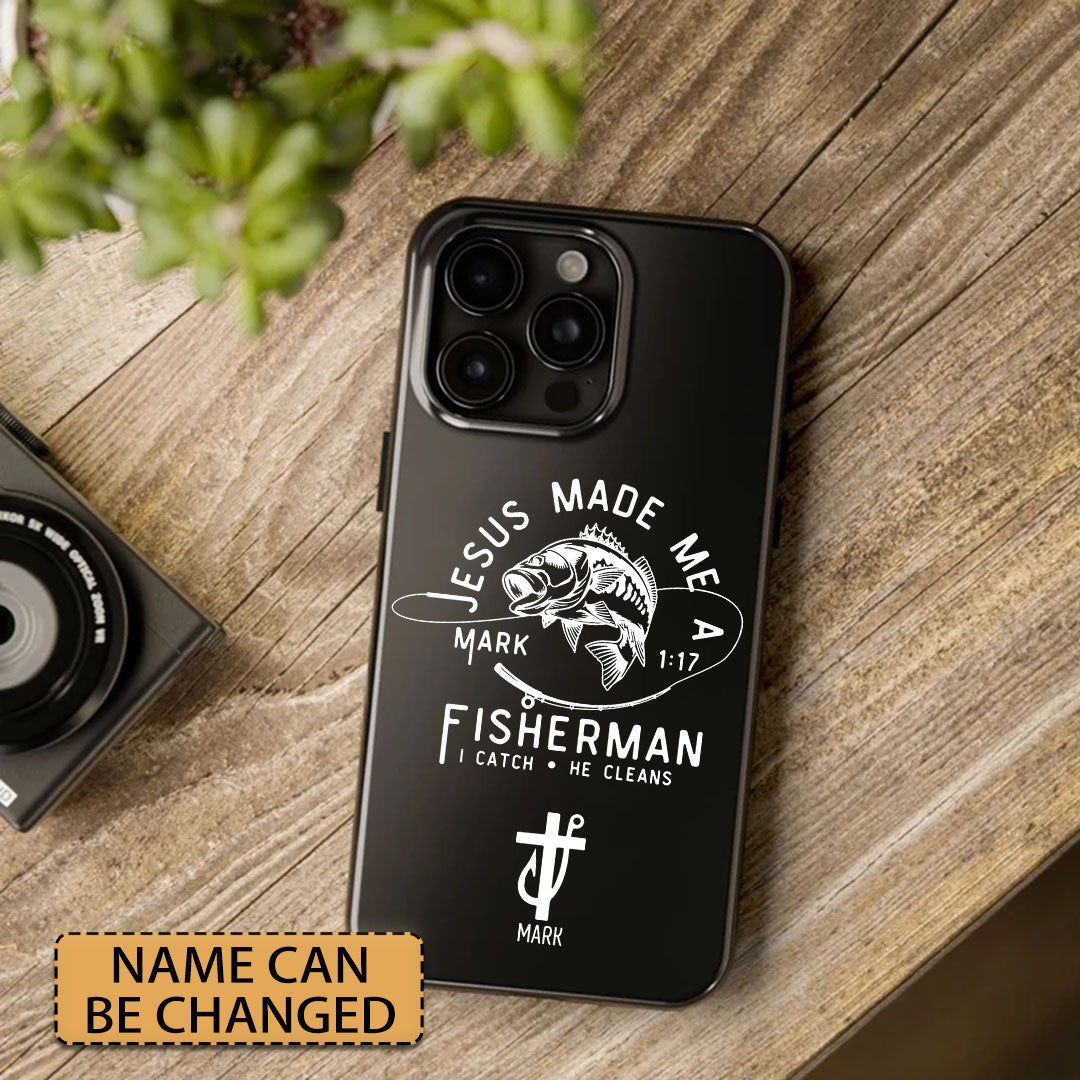 Get your custom "JESUS MADE ME A FISHERMAN" phone case today from CHRISTIANARTBAG and carry your faith and passion wherever you go!