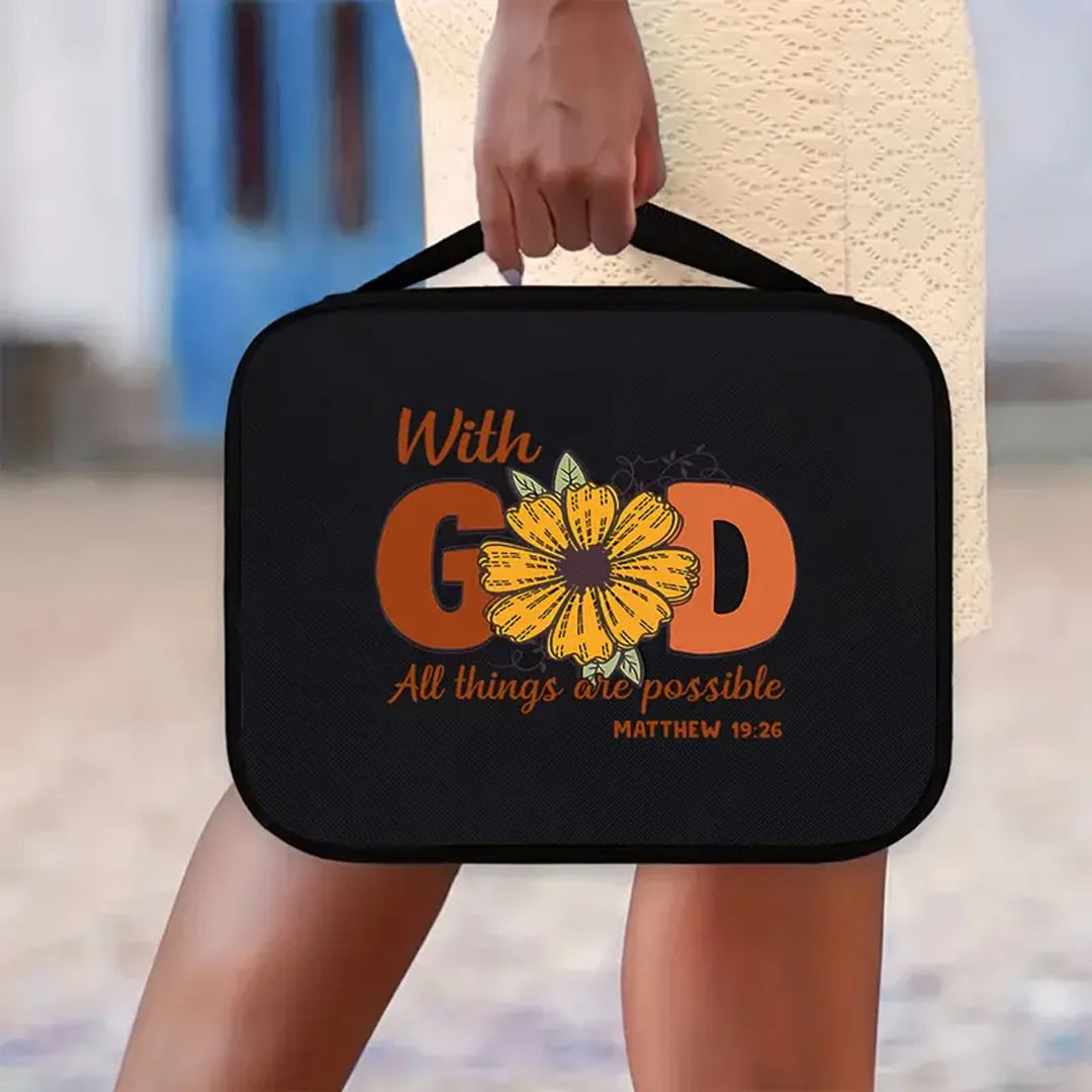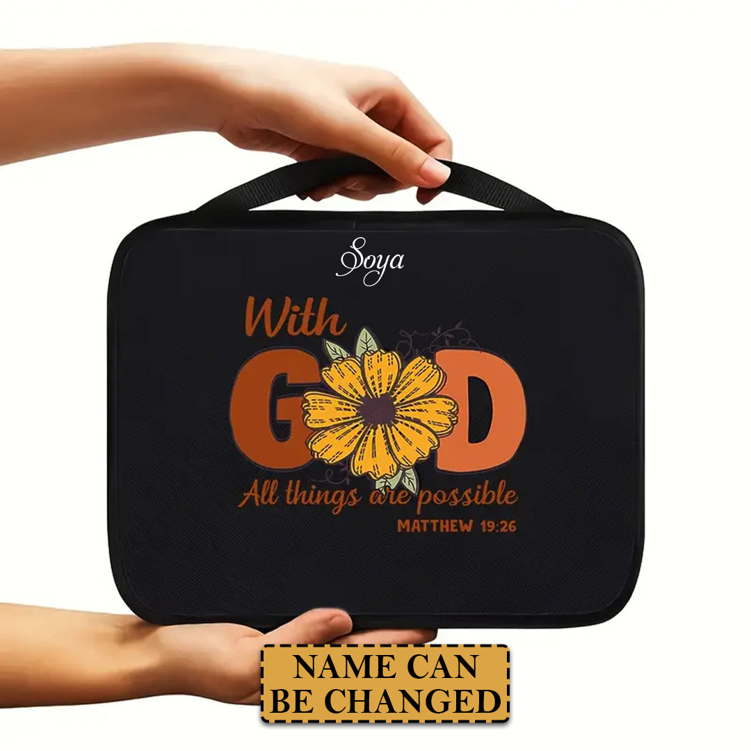 Personalized 'With GOD' Sunflower Canvas Bible Cover – Matthew 19:26 | CHRISTIANARTBAG