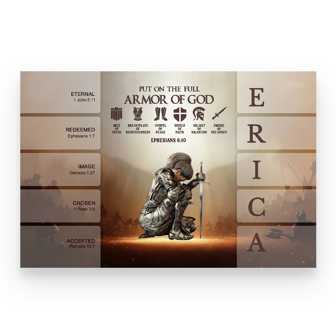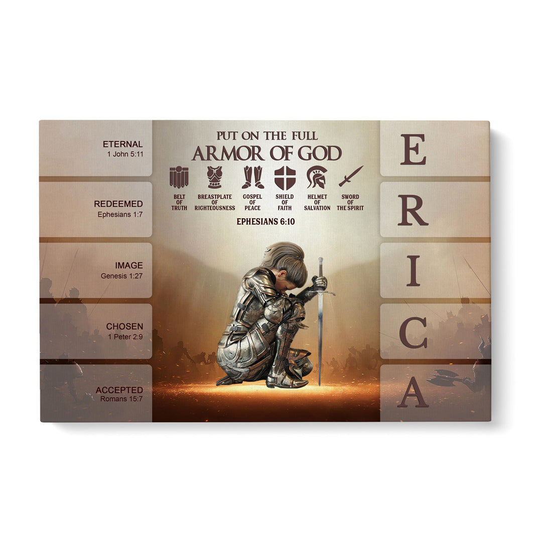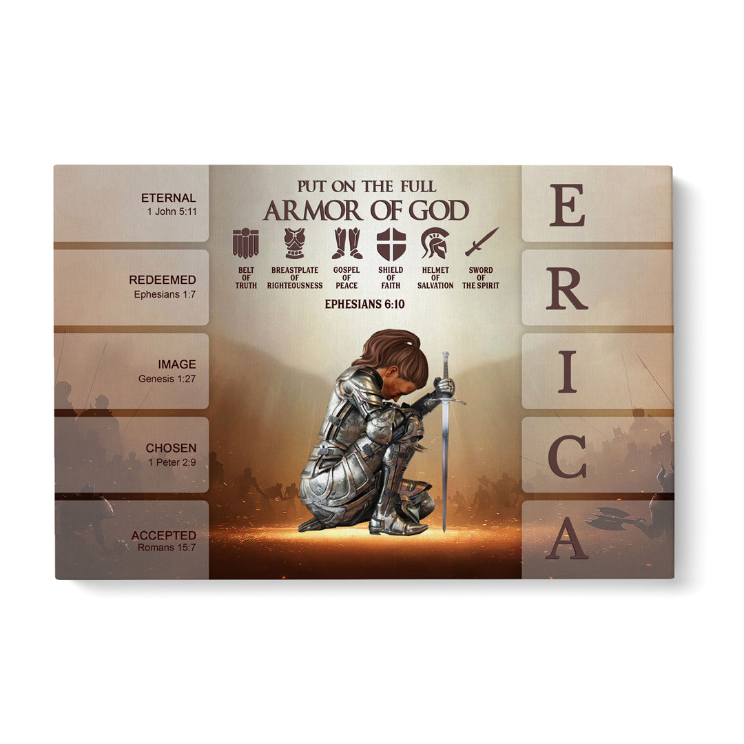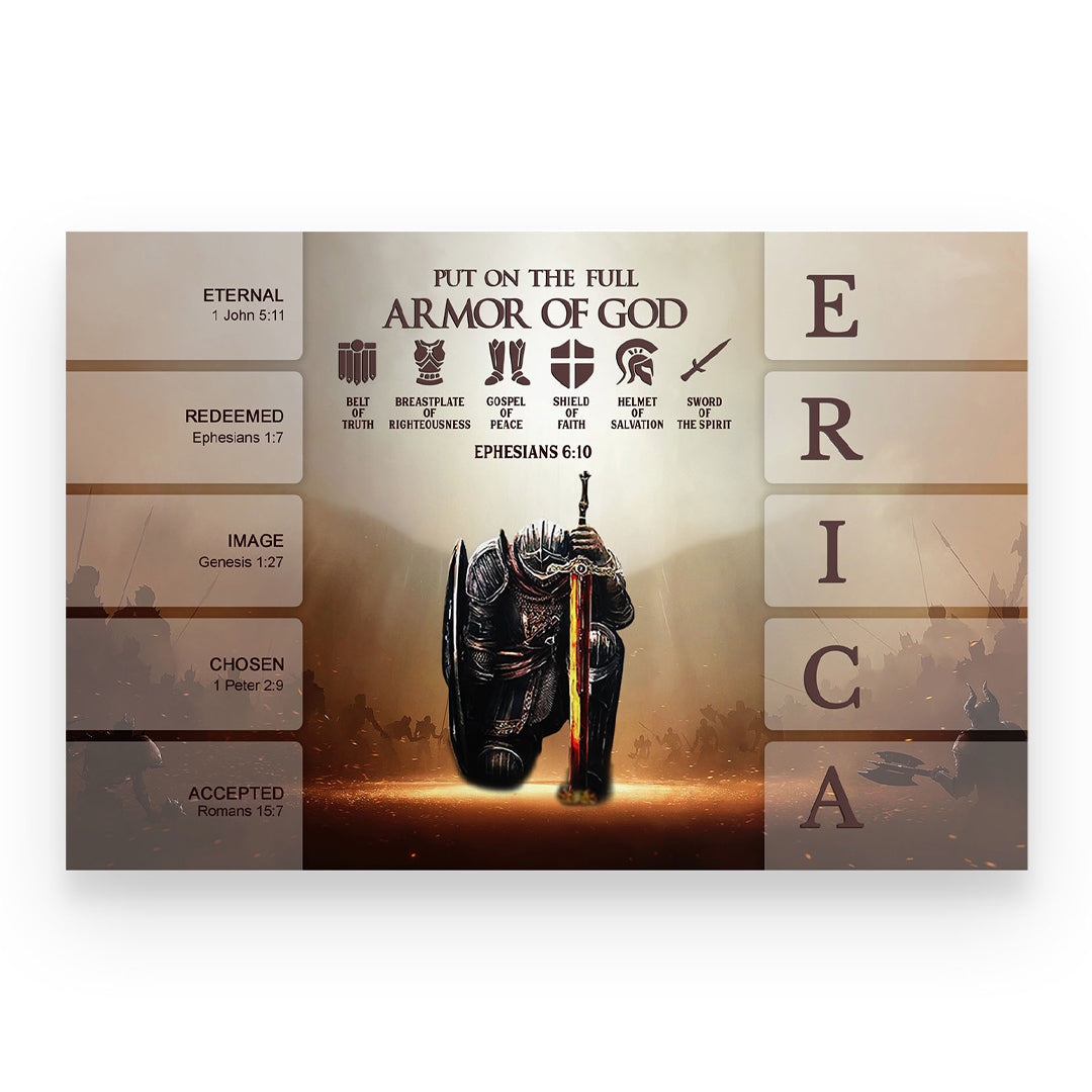 Uncover the sacred meaning of your name - PUT ON THE FULL ARMOR OF GOD Canvas Wall Art by CHRISTIANARTBAG