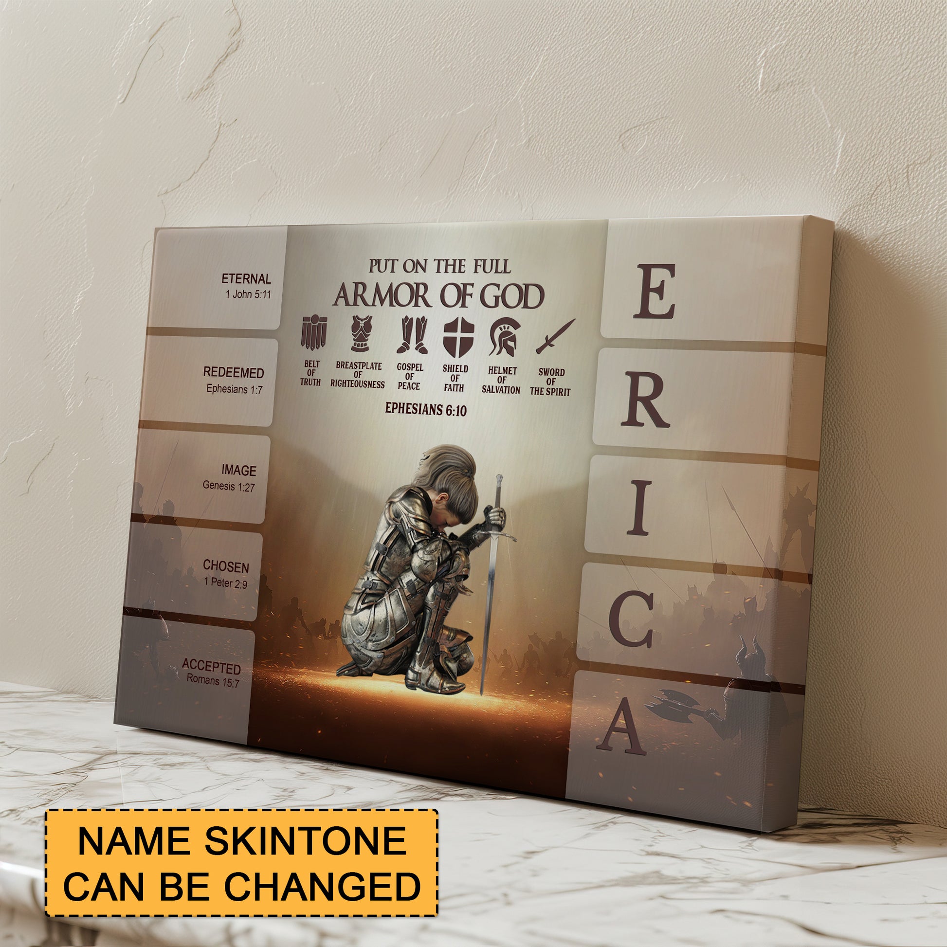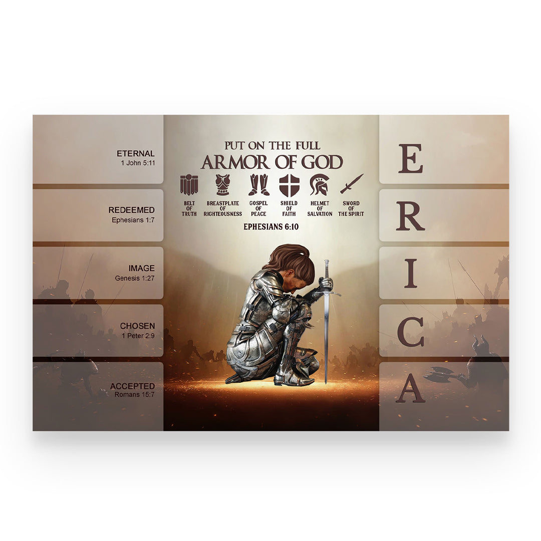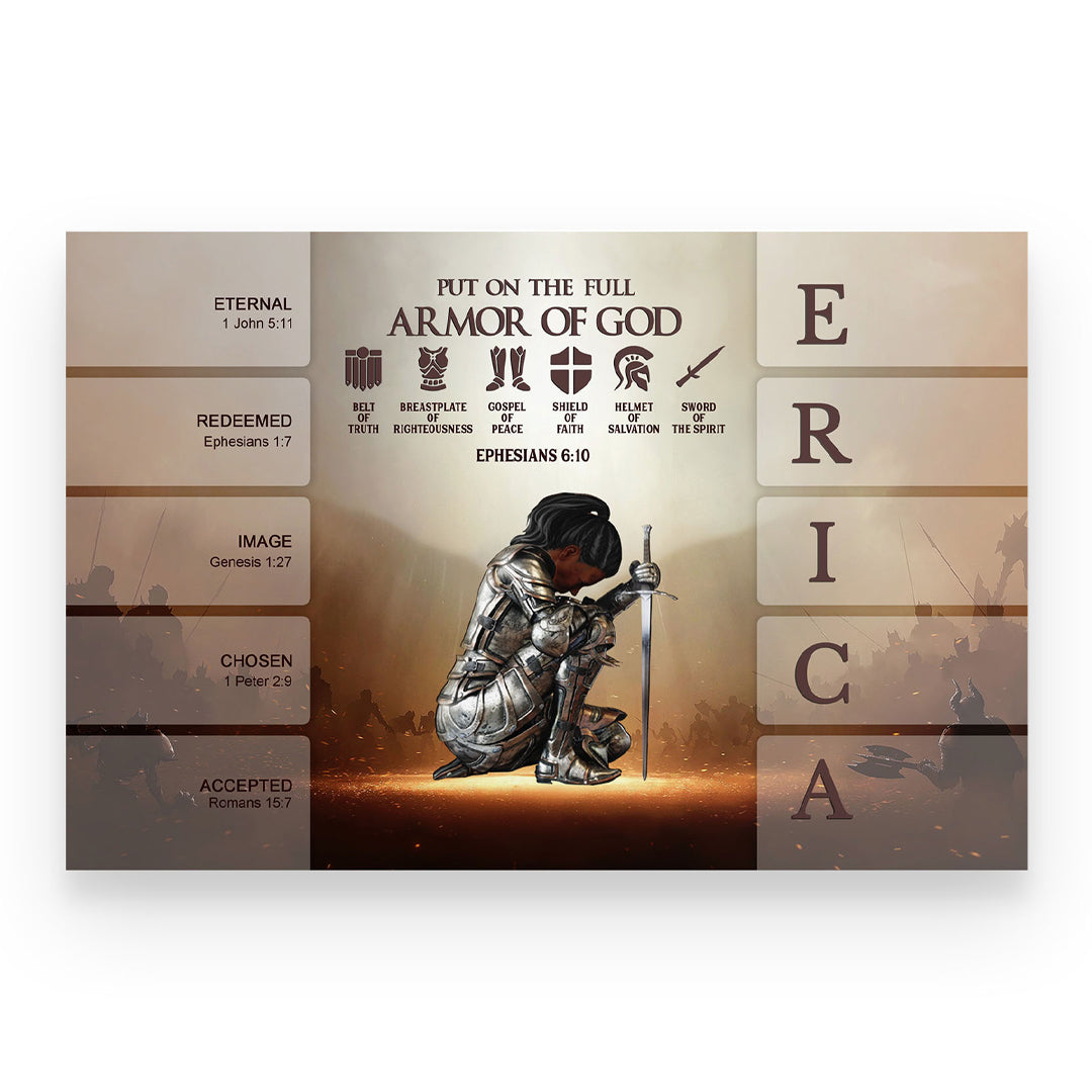 Uncover the sacred meaning of your name - PUT ON THE FULL ARMOR OF GOD Canvas Wall Art by CHRISTIANARTBAG